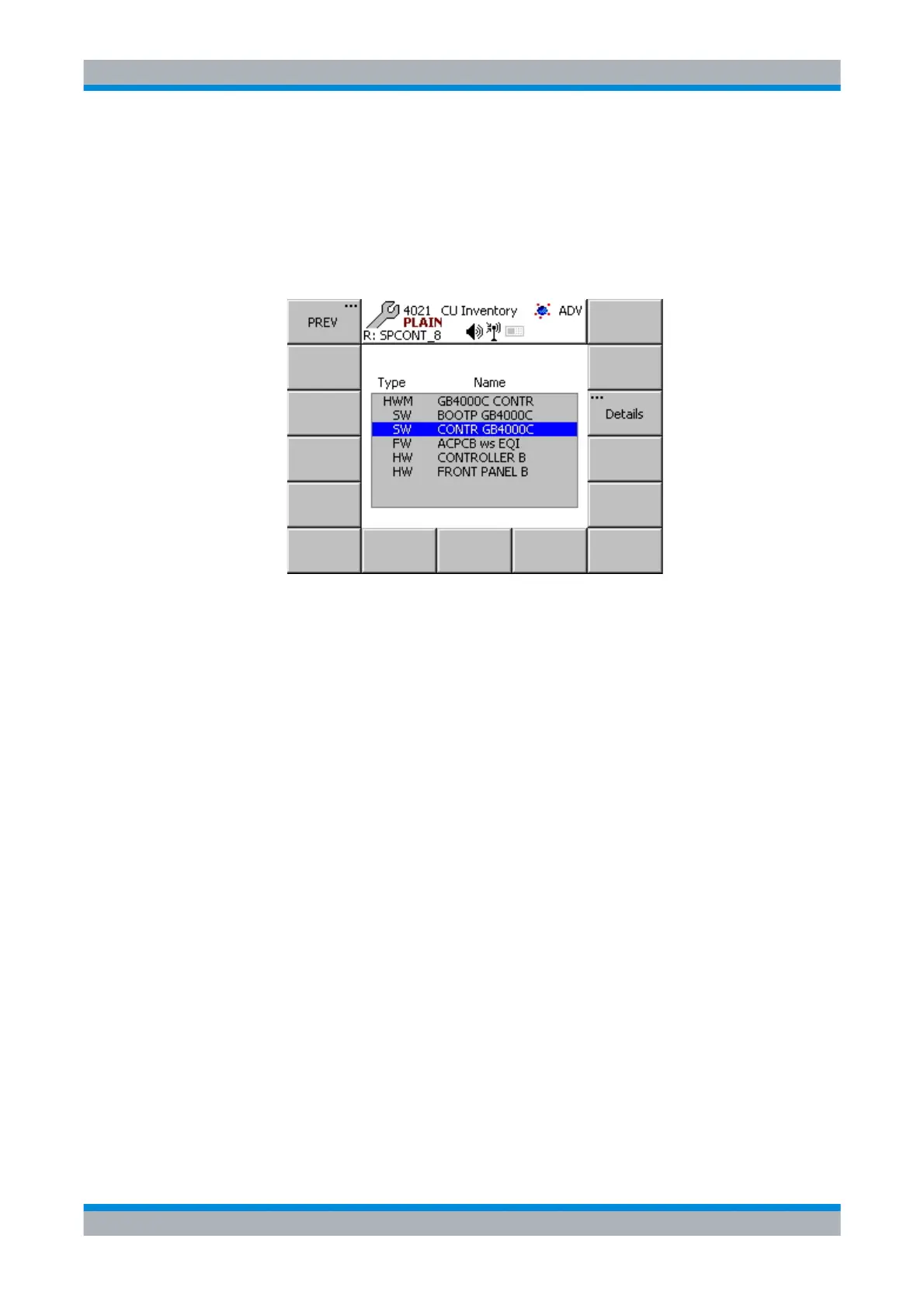 The menu CU Inventory lists in the central area all the components of the control unit. It