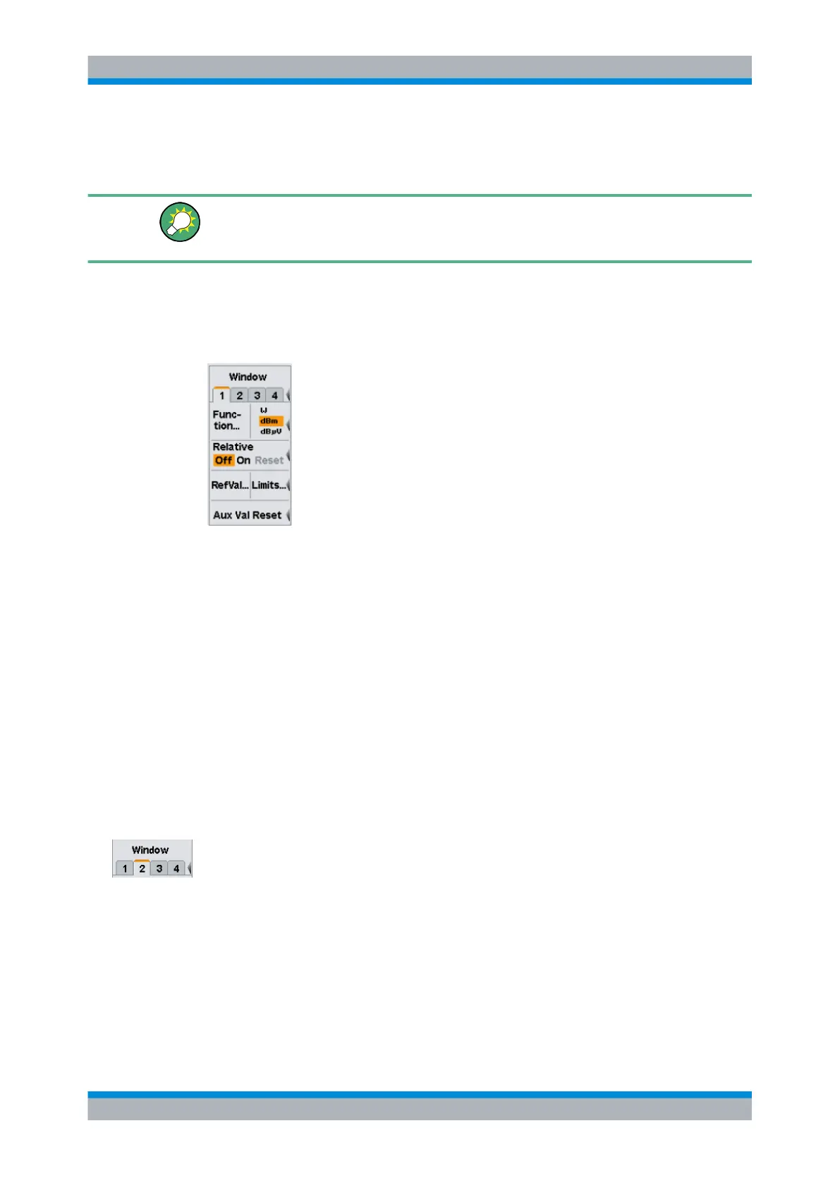 Each window is assigned a tab. All the parameters settings in the "Window" dialog box