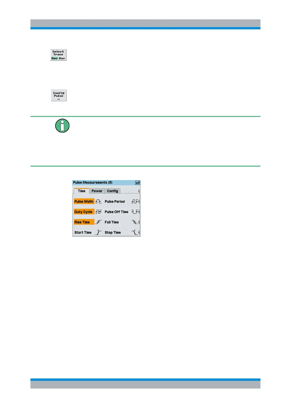 The pulse time parameters to be displayed in the info panel are selected on the "Time"