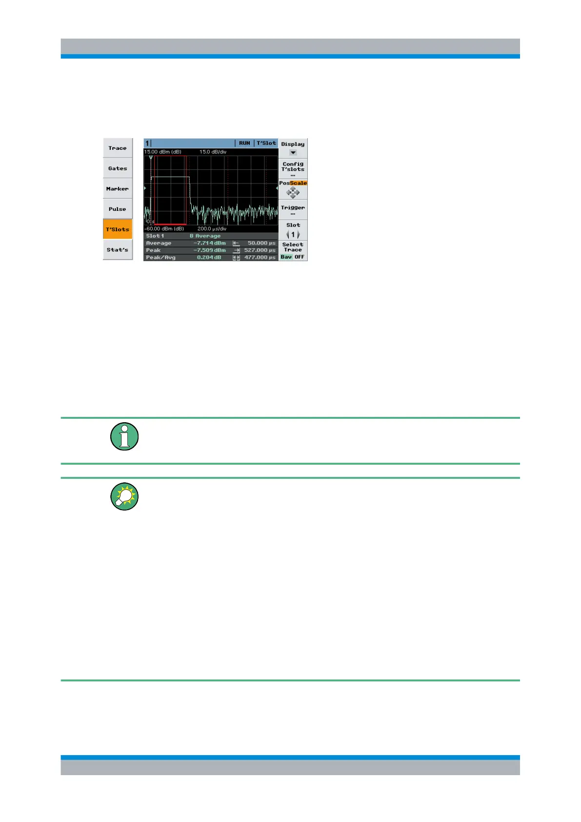 Peak/Avg = peak power / average power (ratio) within the selected timeslot
