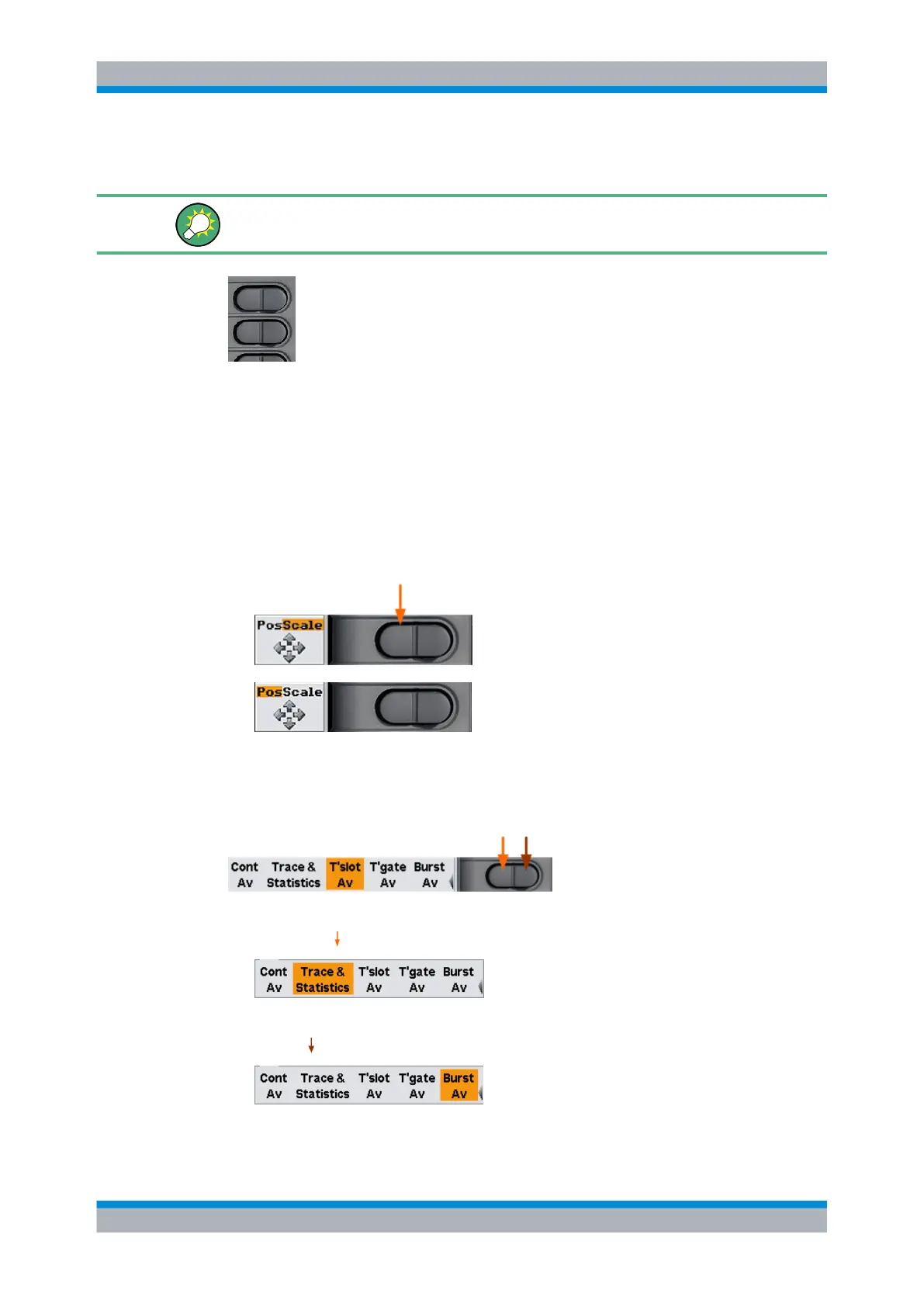 1. To select another function to the left, e.g. "Trace & Statistics", press the left side of