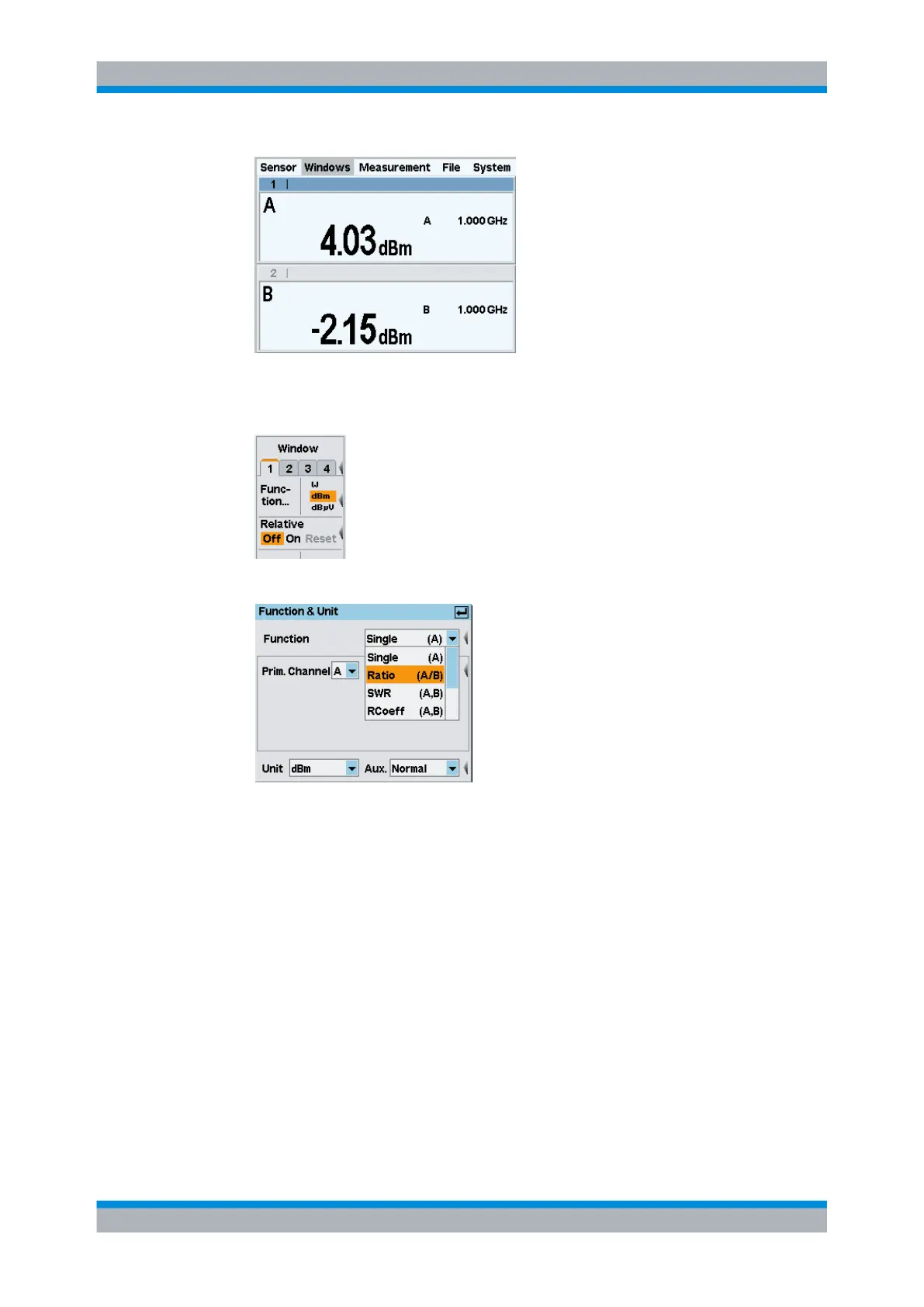 selected window. For example, "Ratio (A/B)" yields the quotient from the measured