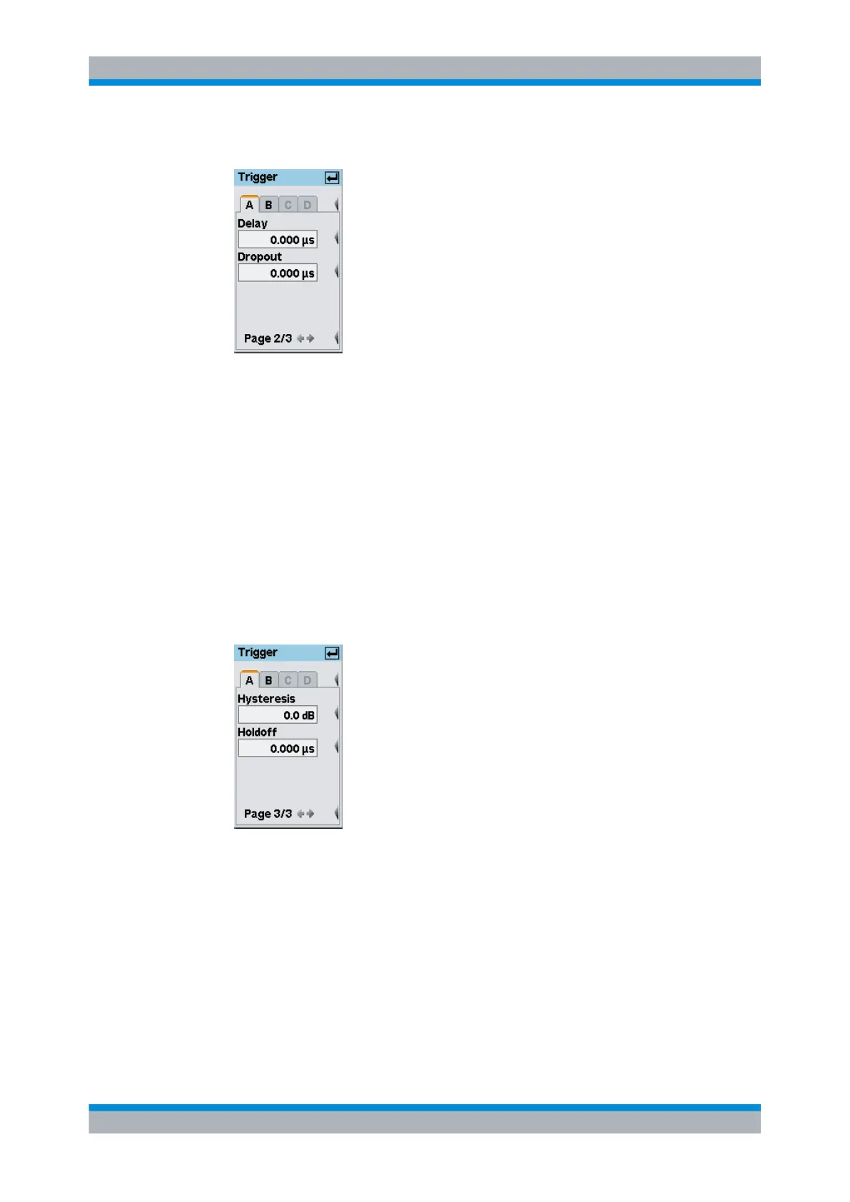 Setting the trigger hysteresis to a value other than 0 dB will prevent triggering from