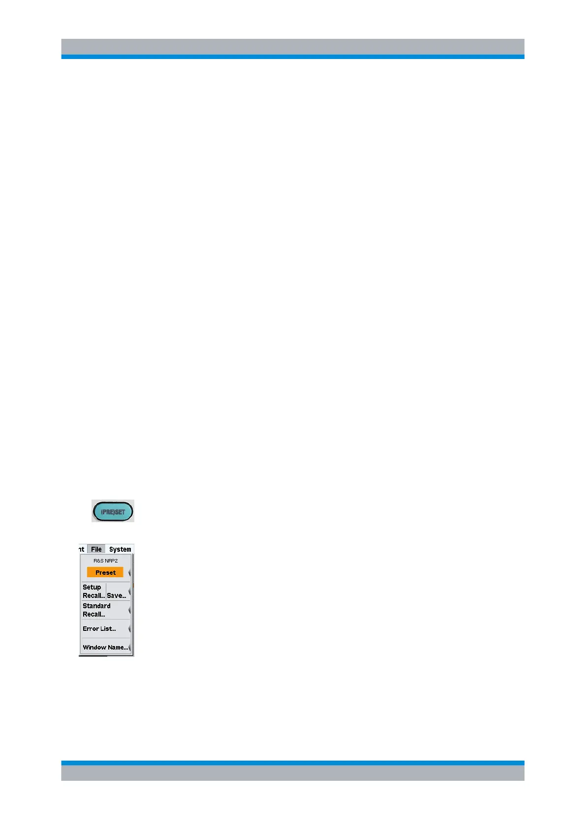 pressing the (PRE)SET hardkey if the "File" menu is open.