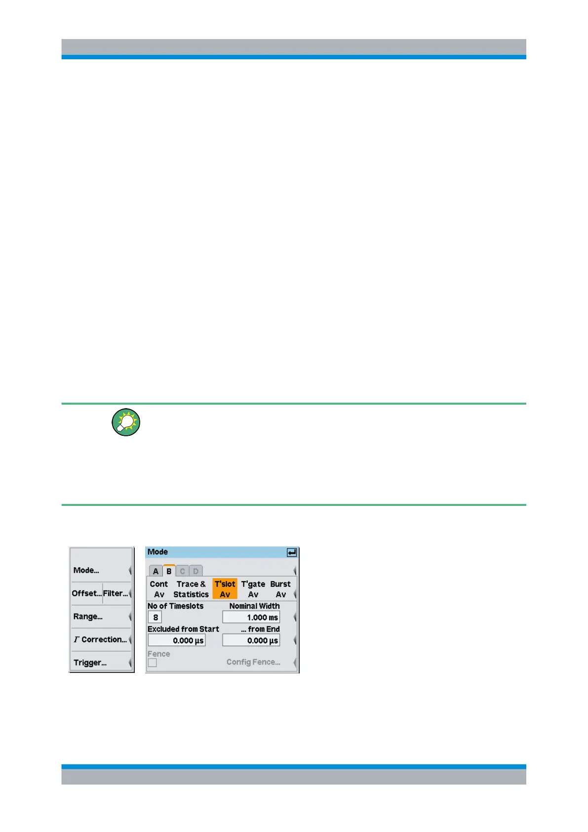 The average power values of timeslots can be measured in the timeslot mode. The time