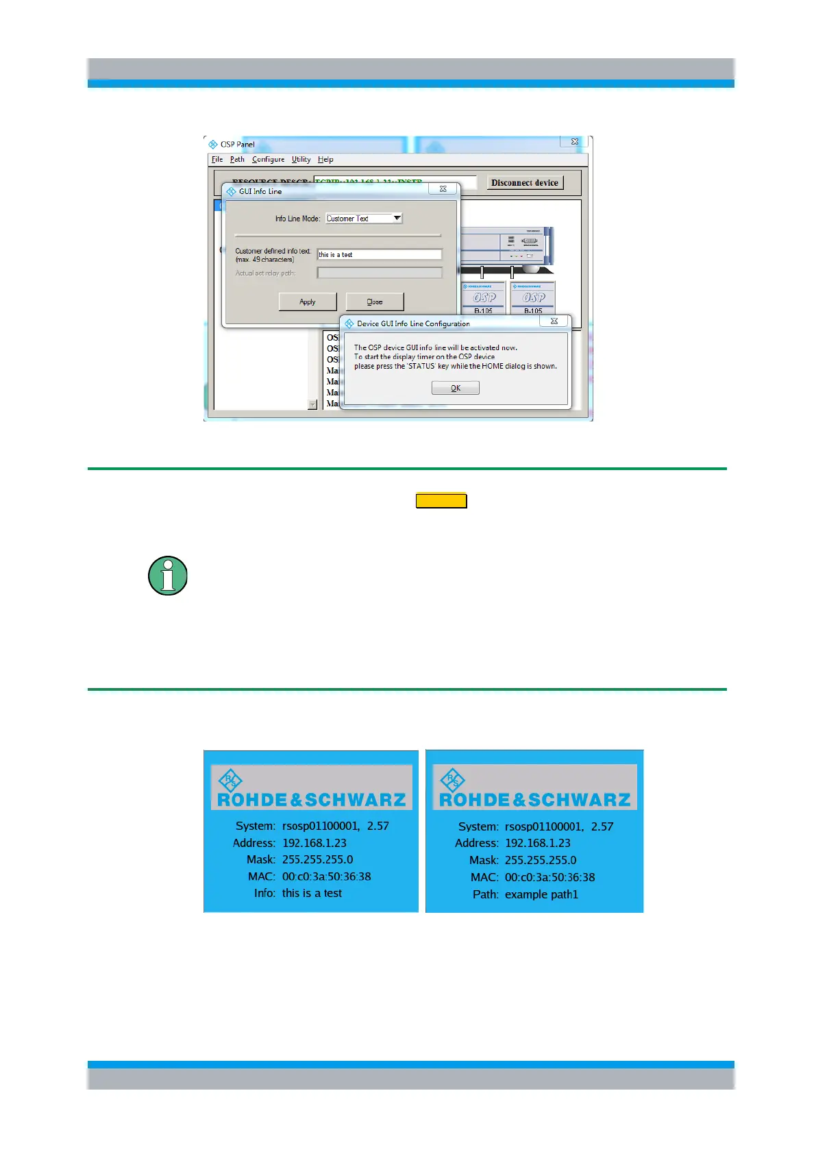 so on the R&S OSP130, press the STATUS key on the front panel or switch to a