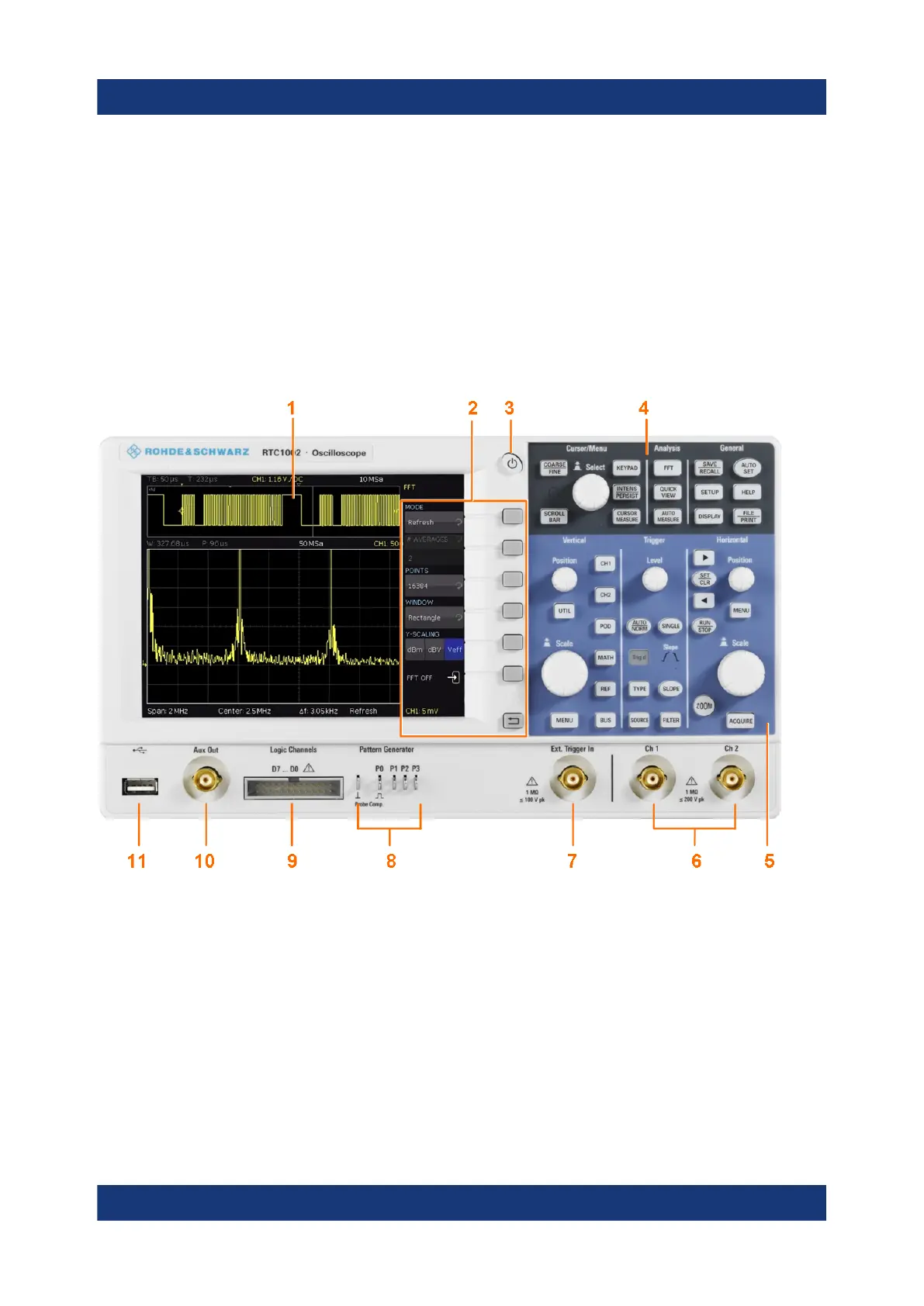 Figure 4-1 shows the front panel of the R&S RTC1000. The function keys are
