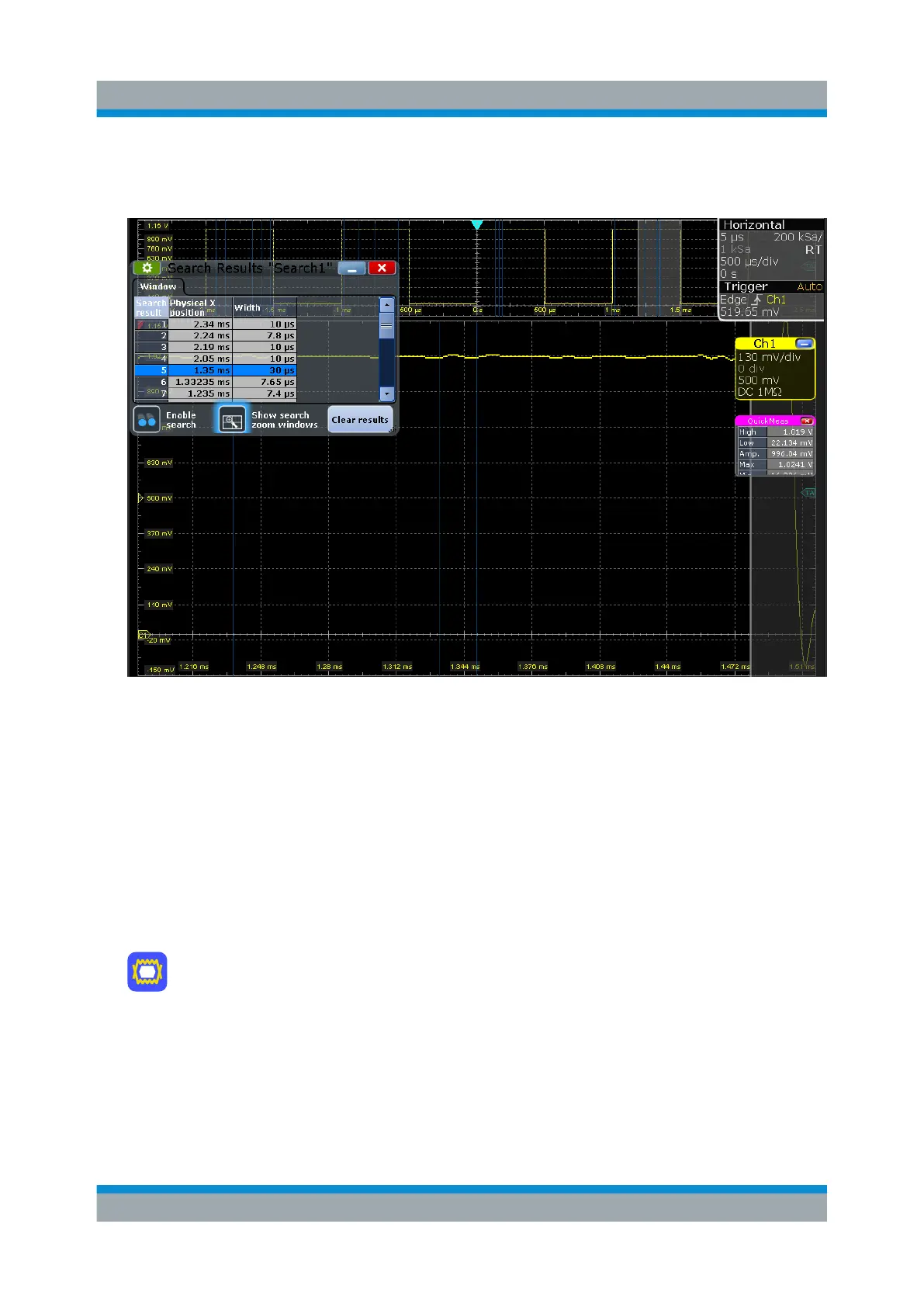 8. In the results table, tap the row of the search result that you want to display in