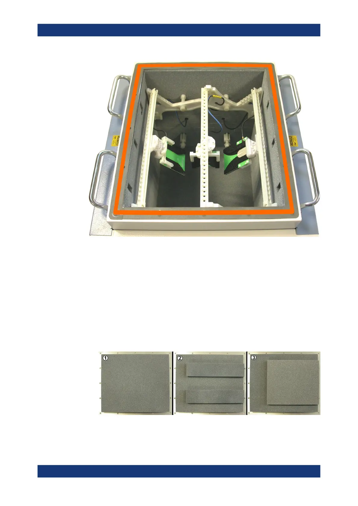 Figure 7-5: RF shielded box with top cover opened. The gasket is marked in orange color