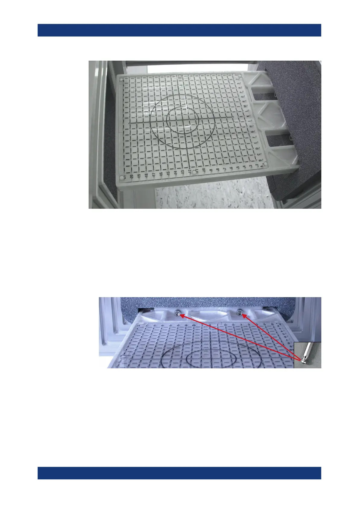 The following mounting instruction uses the DUT holder tray R&S TS-F24P1 as an