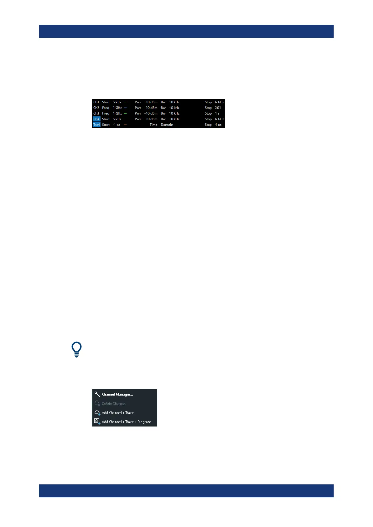 The main properties of all channels assigned to the traces in the diagram are displayed