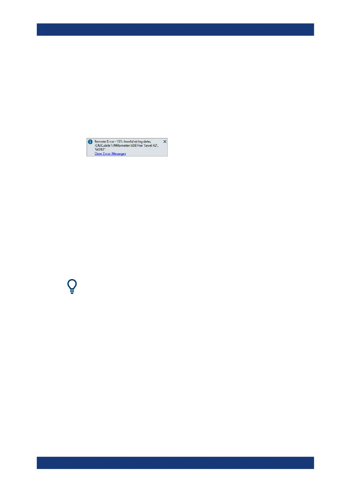 Remote errors (SCPI errors) can occur during the execution of a remote control