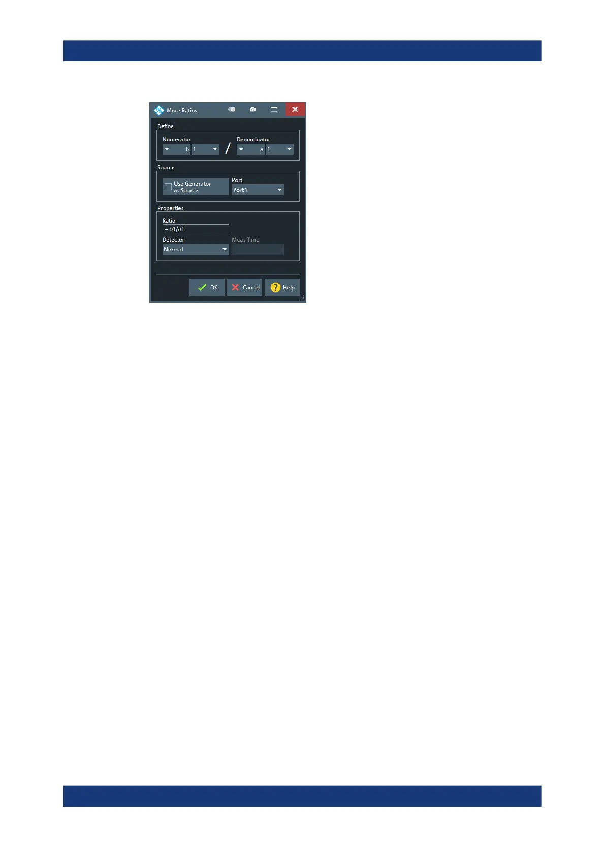 The notation for ratios follows the usual scheme of the vector network analyzer: