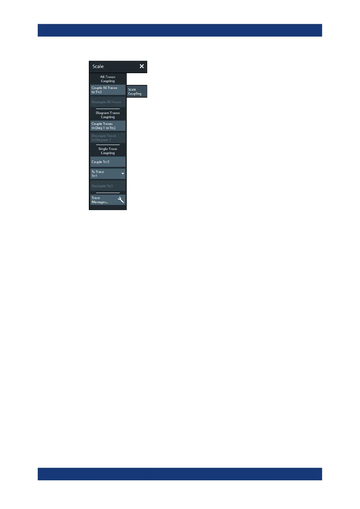 Applies the scale settings of the reference trace ("To Trace") to all traces / to the active