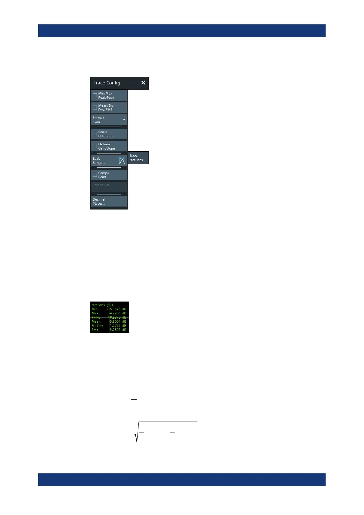 The upper two softkeys in the "Trace Statistics" tab display or hide groups of statistical