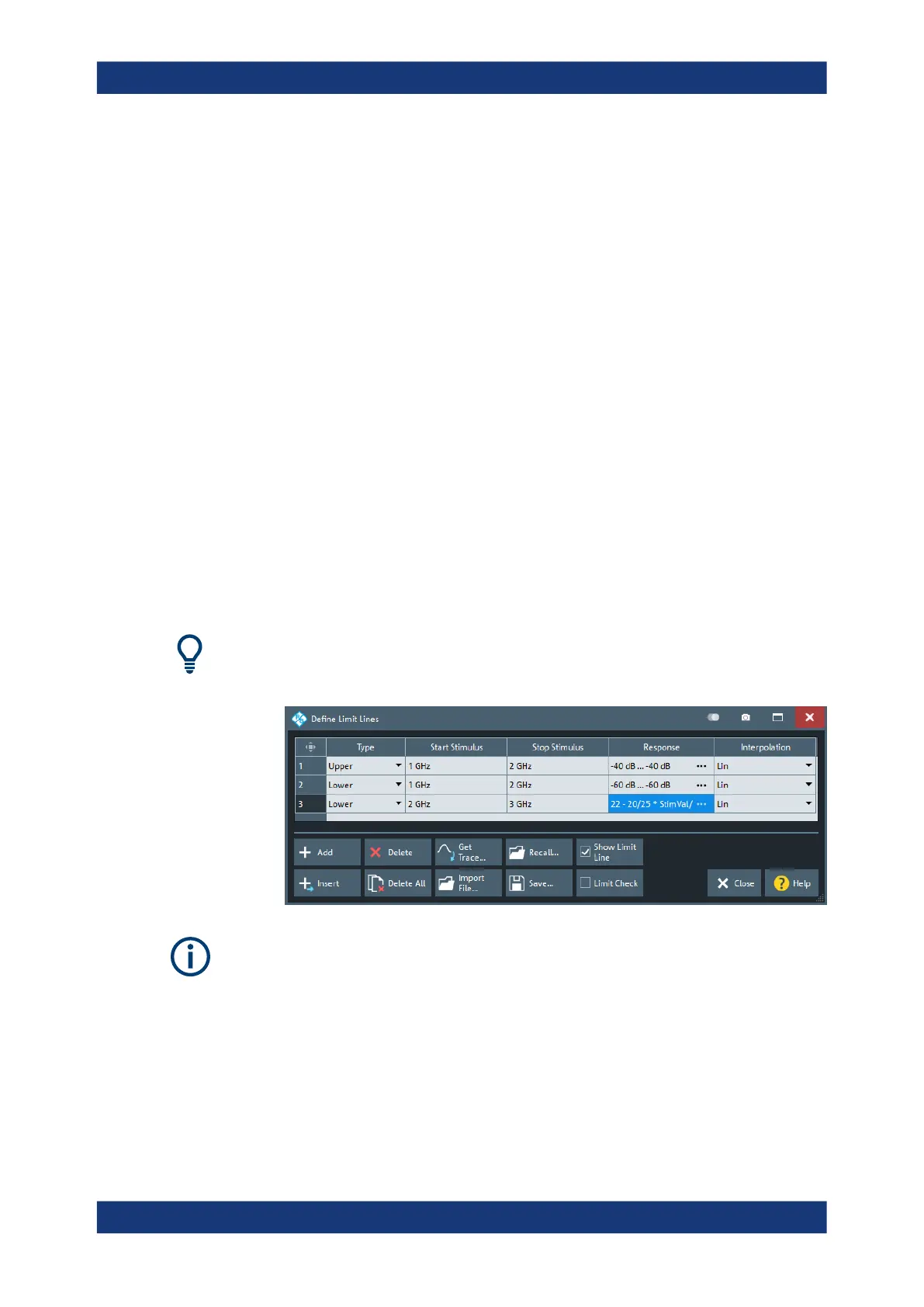 6.6.1.2 Define Limit Lines Dialog