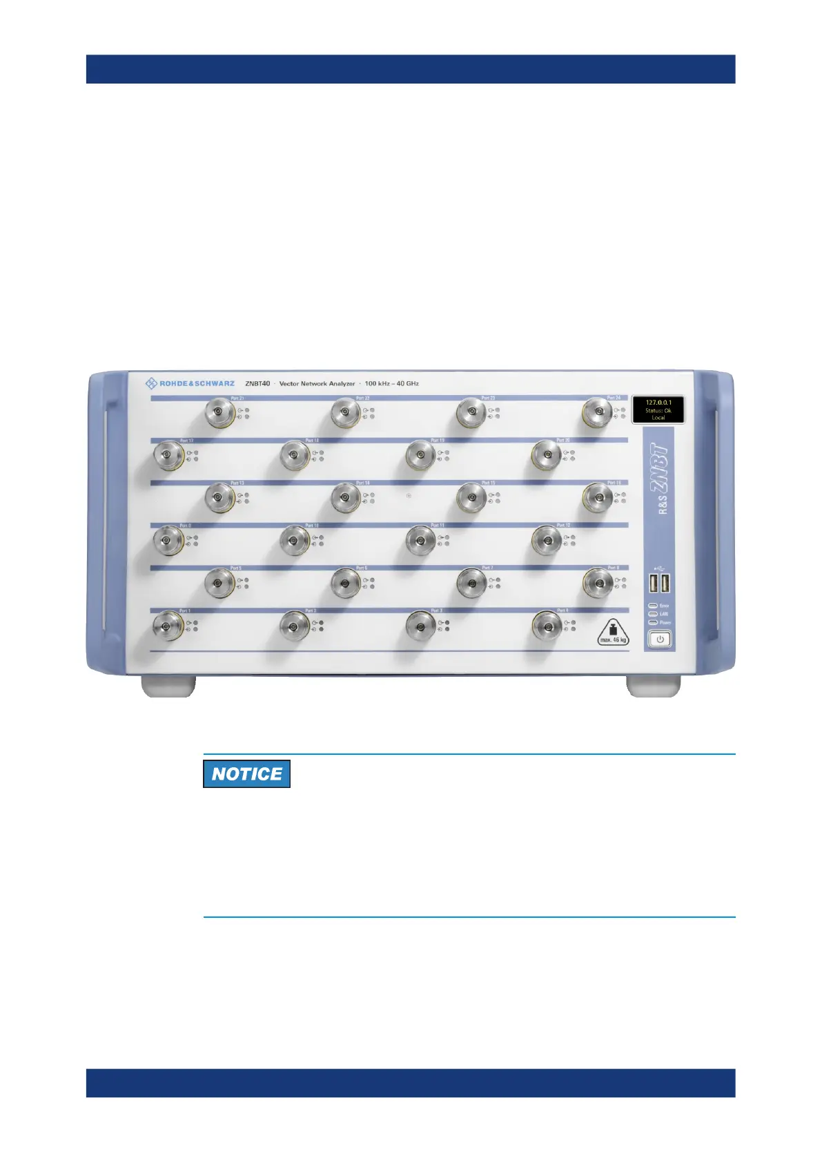 The largest part of R&S ZNBT front panel is reserved for the test ports, with an admin-