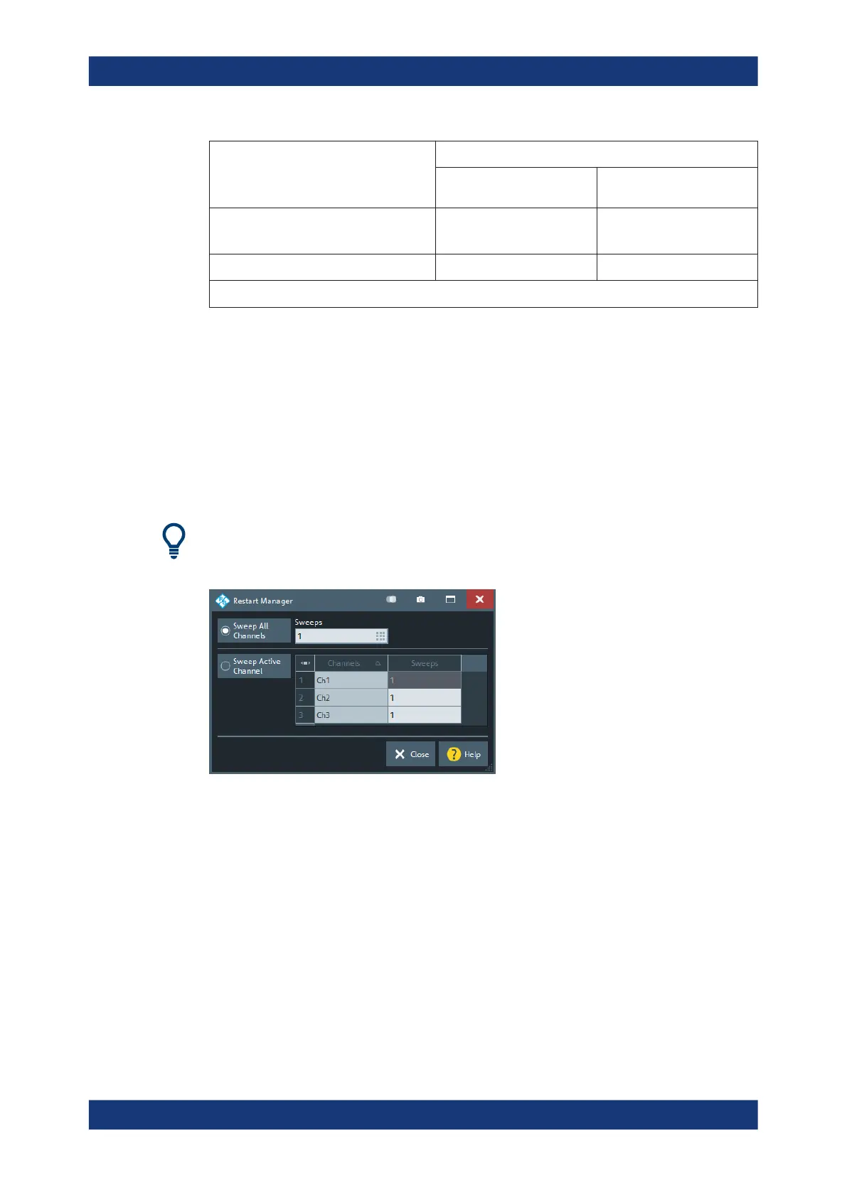 Access: CHANNEL – [SWEEP] > "Sweep Control" > "Restart Manager..."