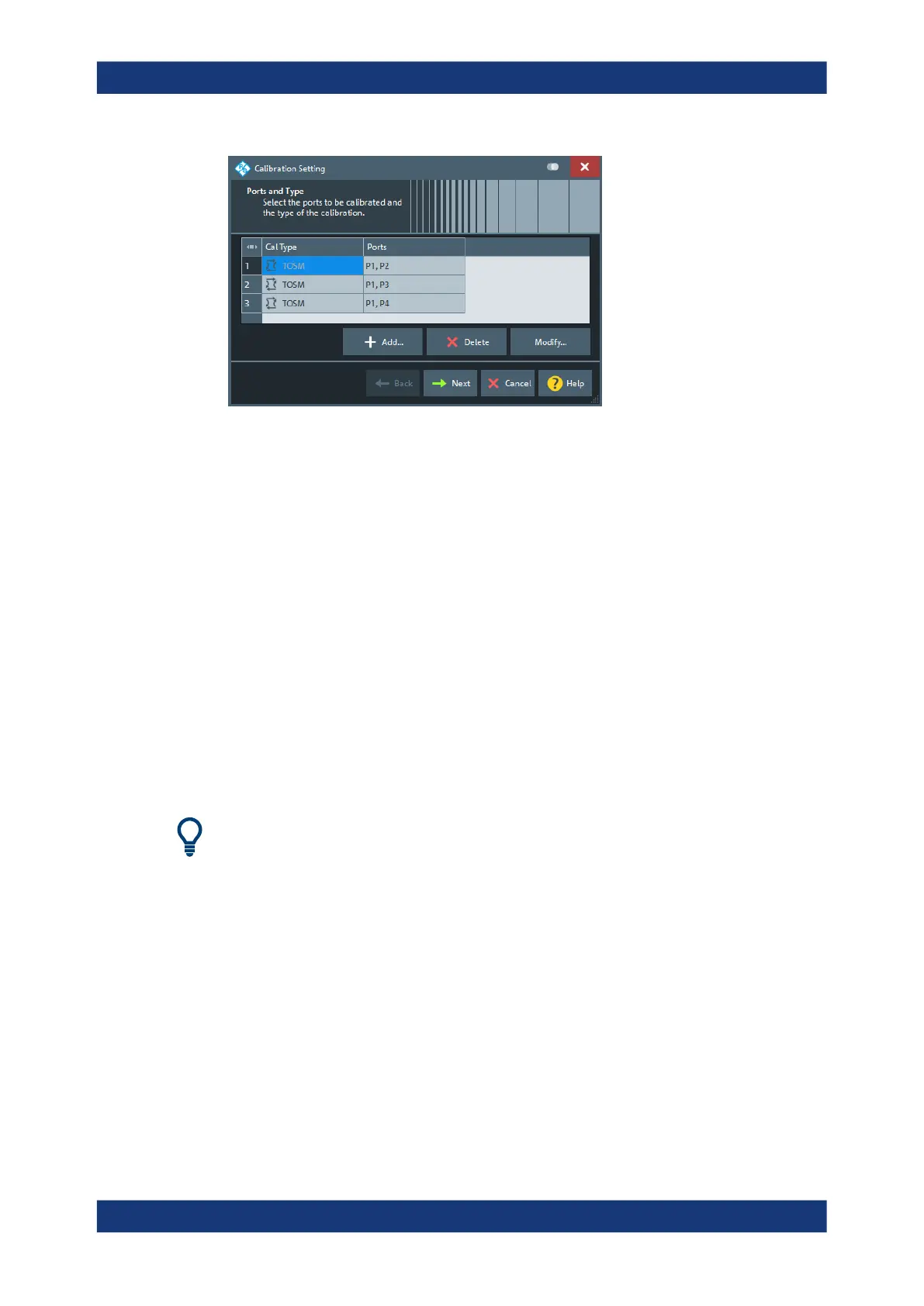 Access: Calibration Setting Wizard (MultiCal) > Step 1: Ports and Type> "Add" / "Mod-