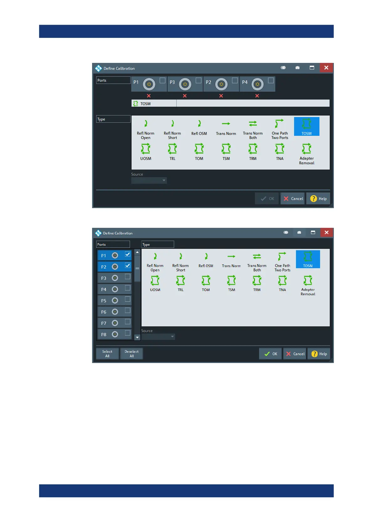 Figure 6-22: Define Calibration dialog (manual, > 4 test ports)