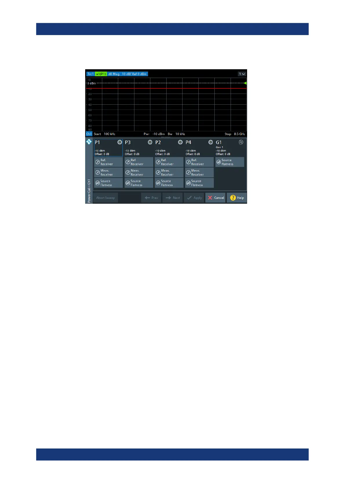 After successful measurement receiver calibration, the "b<n>(P<m>)" trace must be