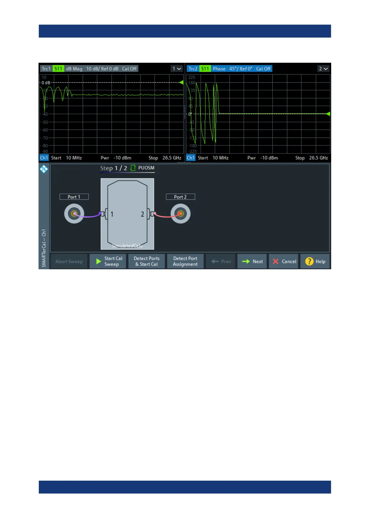 The upper part of the screen displays power trace diagrams and the lower part dis-
