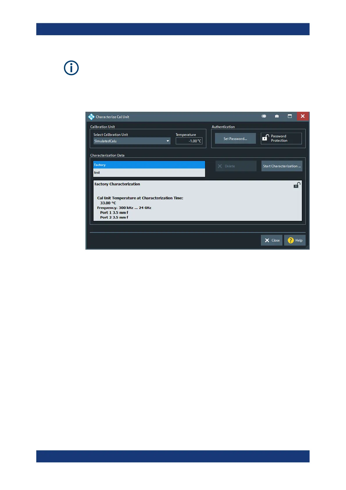 Tip: A password also blocks a switchover of the active characterization during calibra-