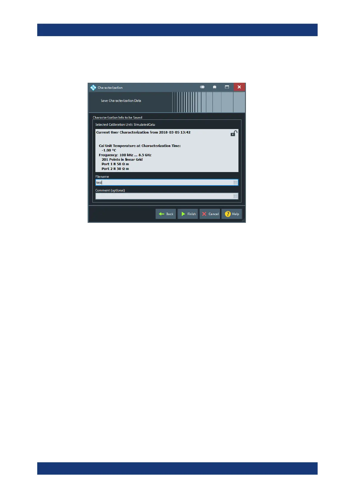 tion file. A filename is required before you can "Finish" the characterization wizard and