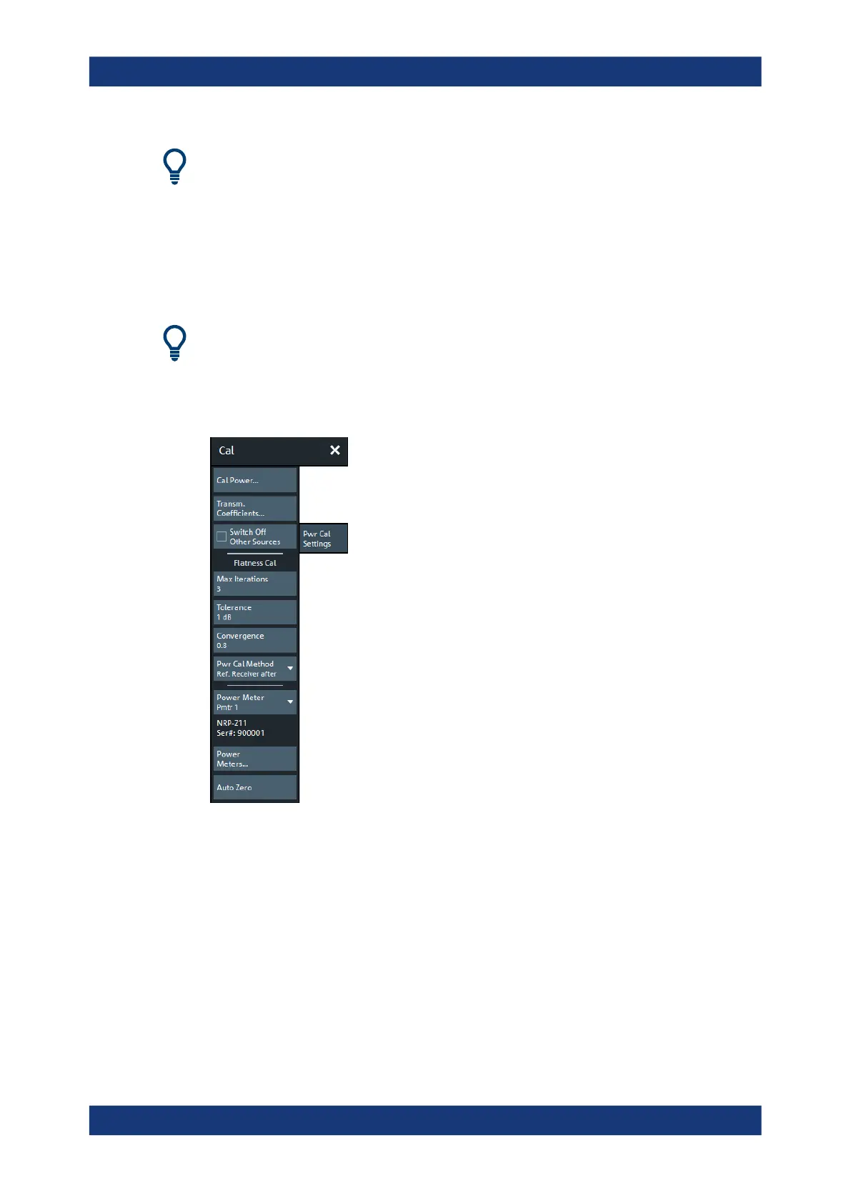 "Power Cal..." to perform the necessary calibration sweeps with default power cali-