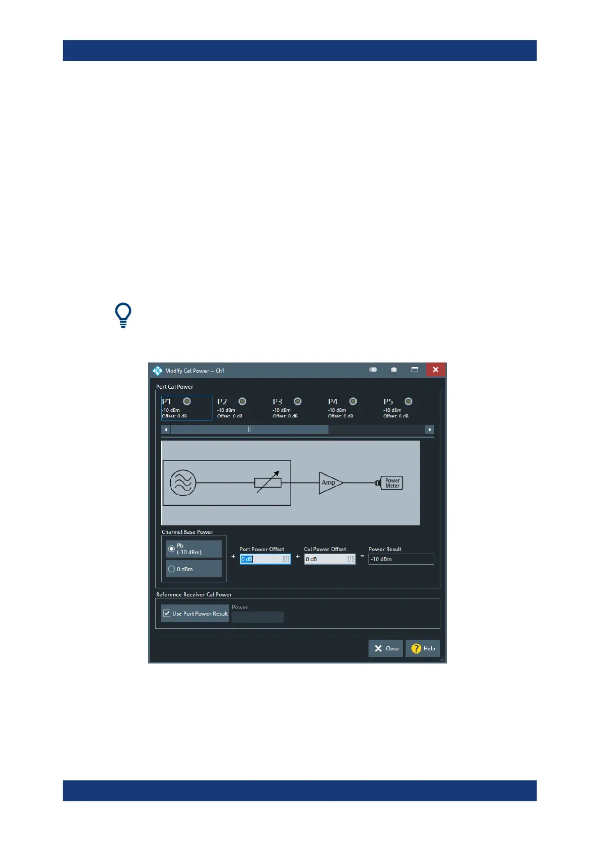 The settings in the "Modify Cal Power" dialog are also used to define port-specific