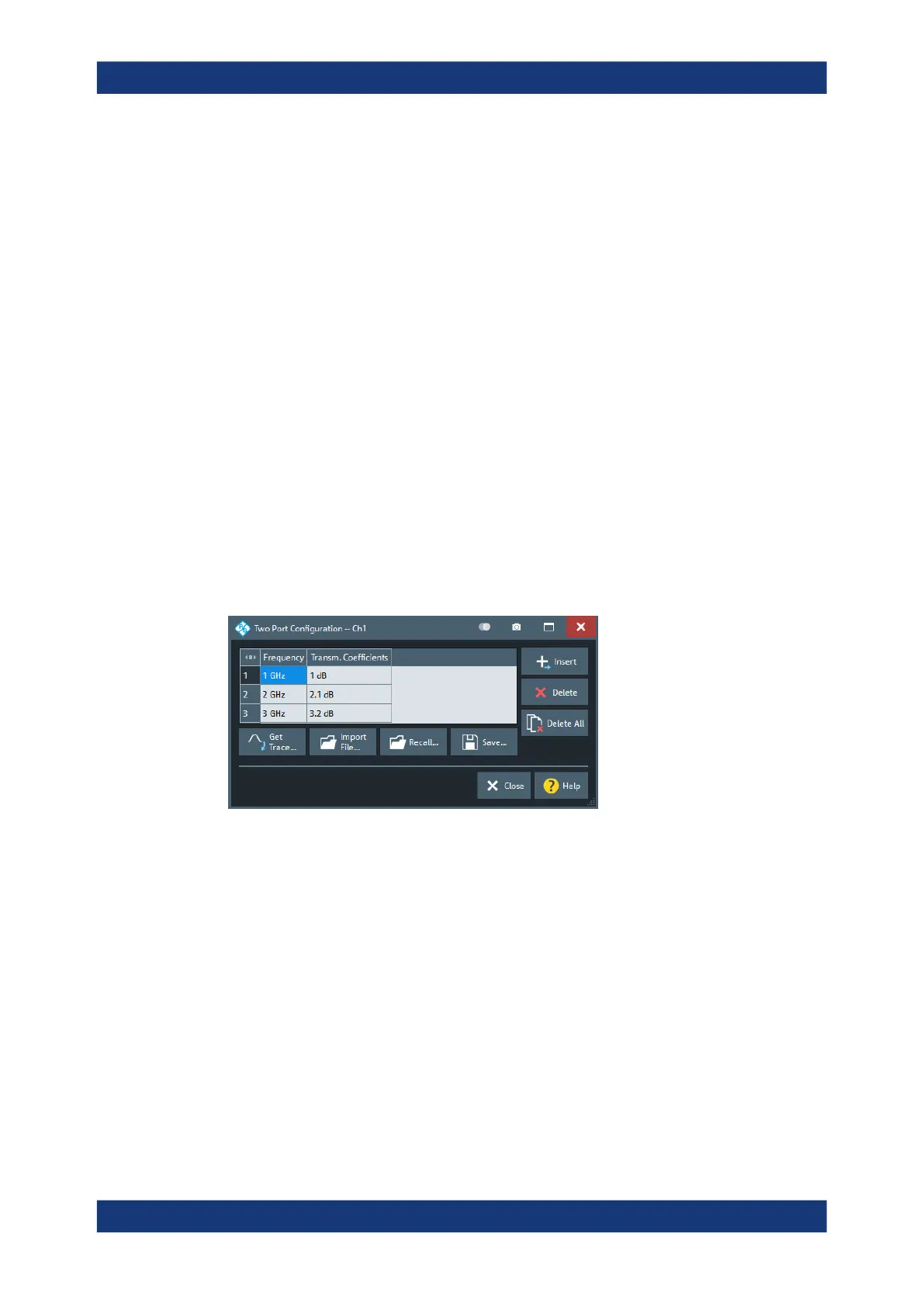 The required two-port information is a list of transmission coefficients at different fre-