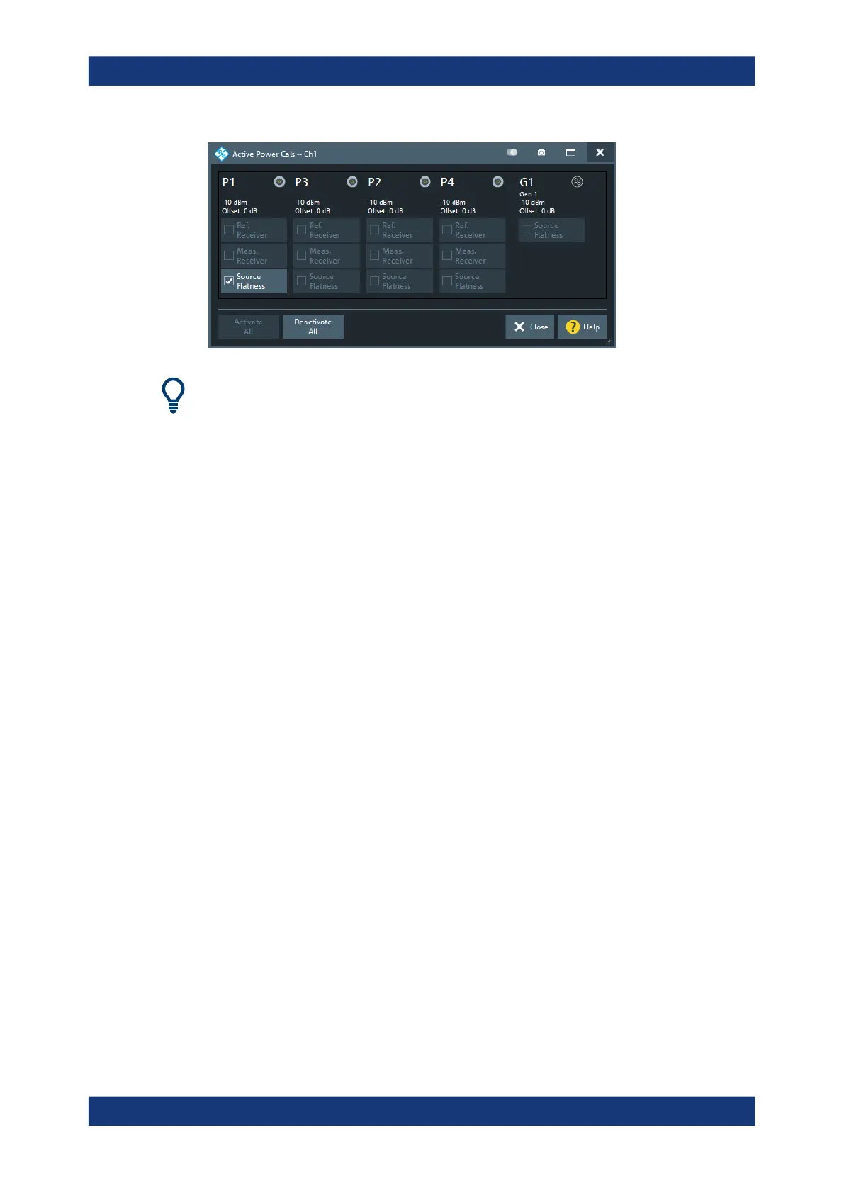 in the port overview. A source power calibration is available at each generator port.