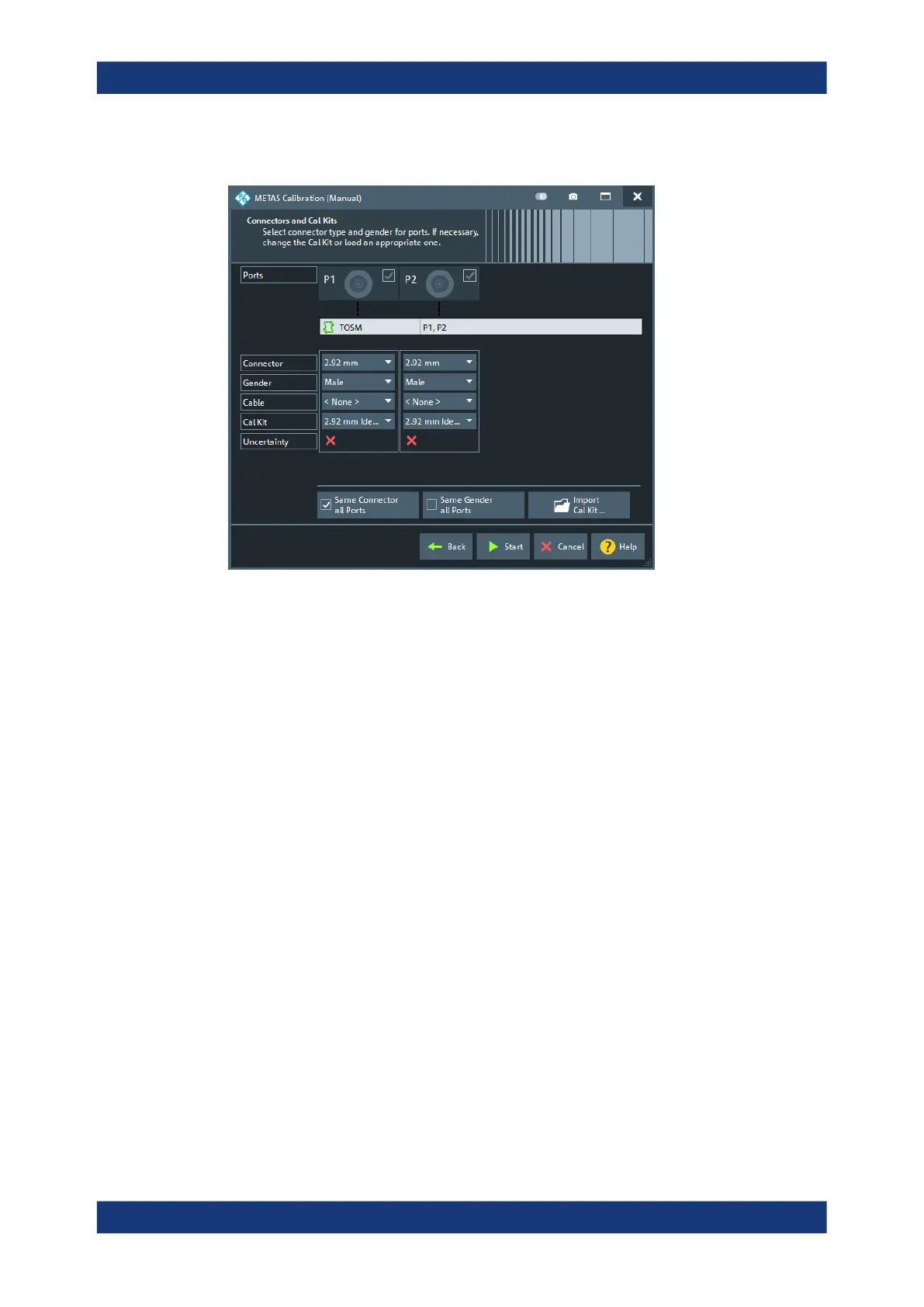 Allows you to specify the cal kits to be used for the selected ports. For meaningful