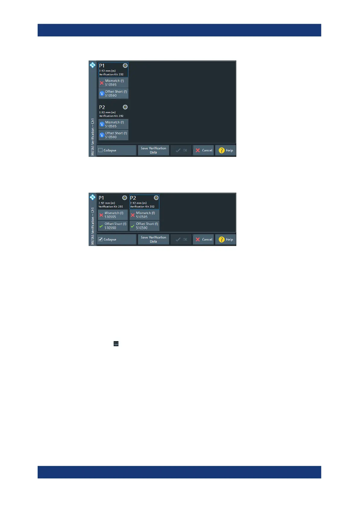 the METAS verification configuration, and the verification measurement data obtained