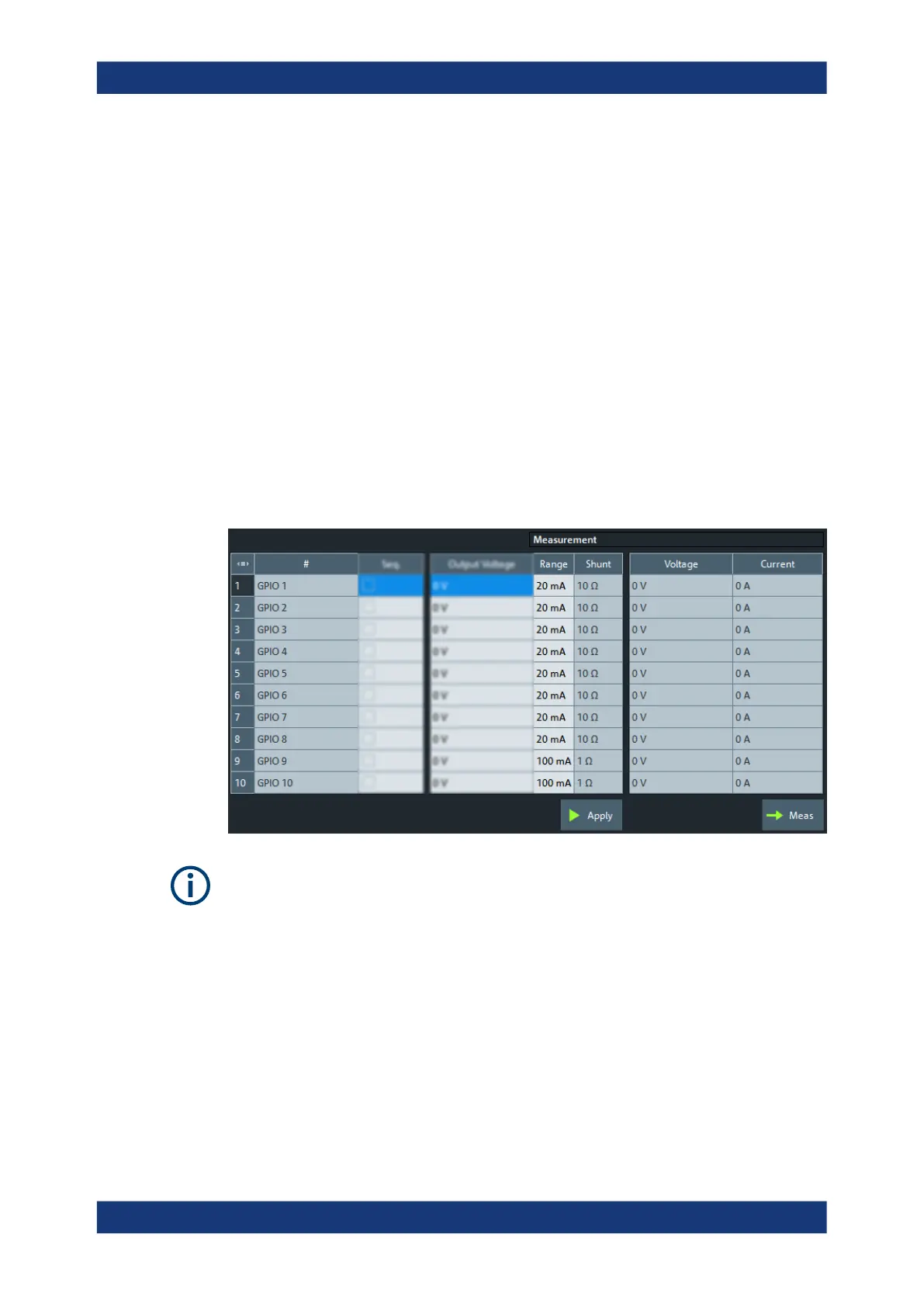 Use the "Apply" button to activate the configured voltage (and Range / Shunt) settings