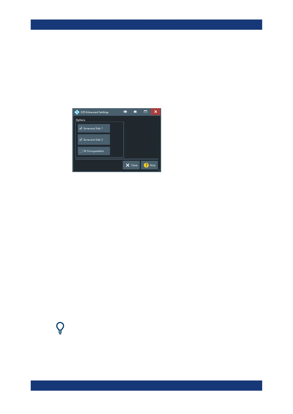 down to the start frequency of the instrument sweep. If checked, the EZD tool adds