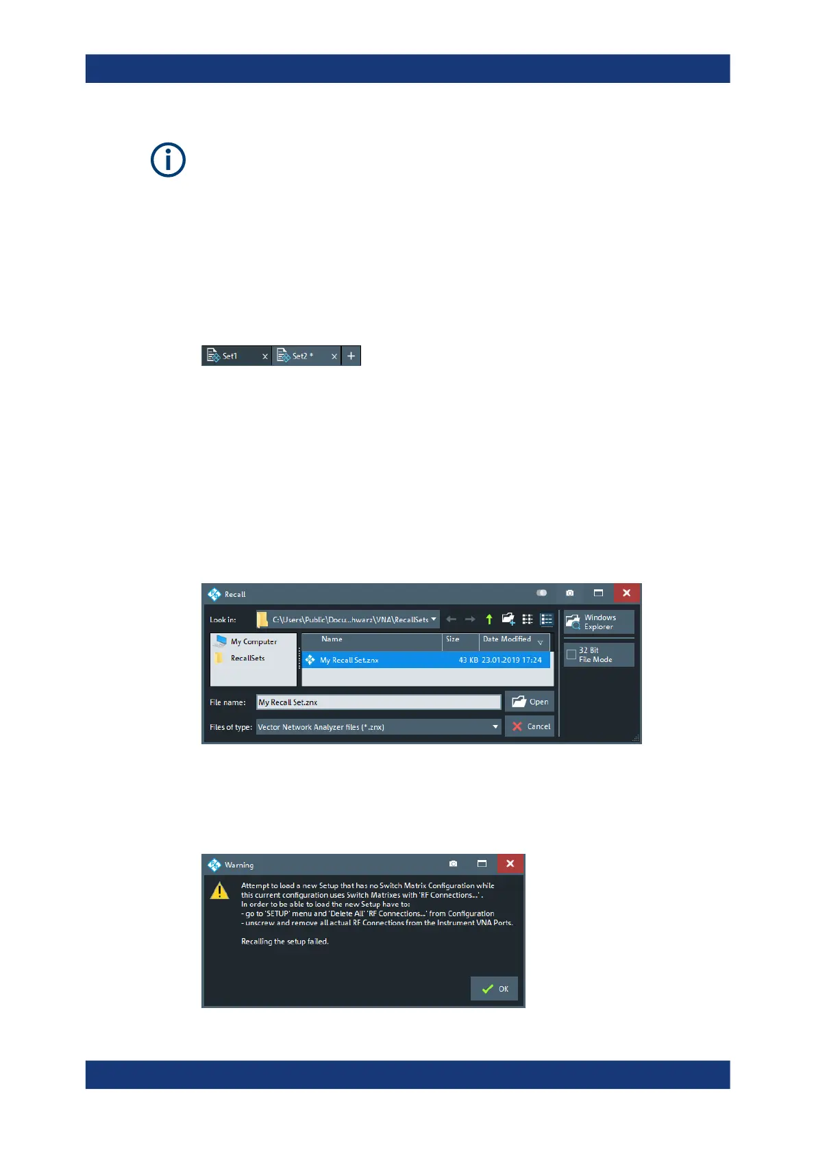does not contain a switch matrix configuration, recalling the setup is aborted. You are