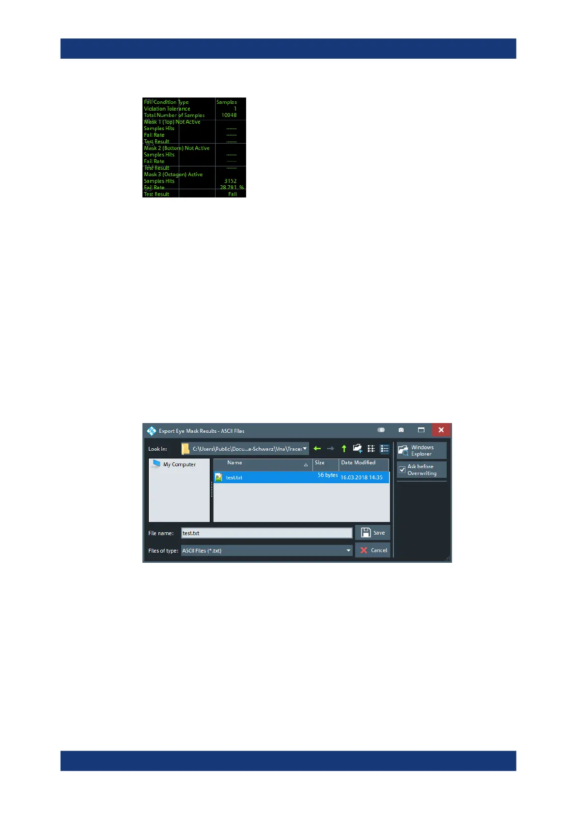 Opens a dialog that allows the user to save the mask test results to an ASCII file.