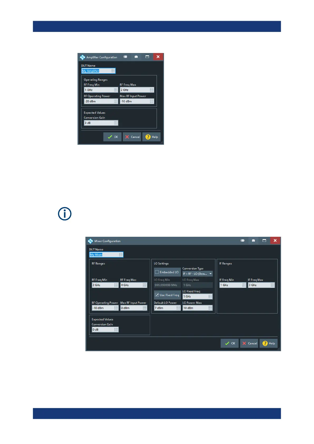 The DUT type "Mixer" is only availble if the instrument is equipped with software