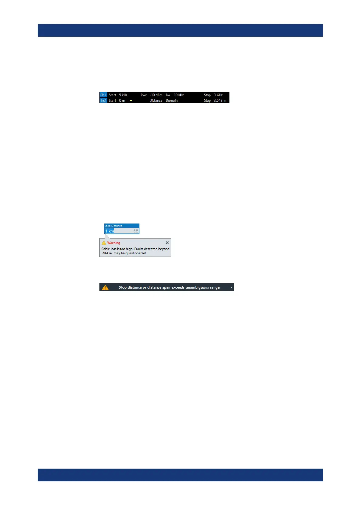Define the distance window for the Distance to Fault measurement. "Start Distance"