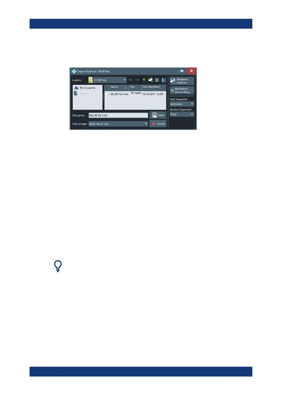Separator" and "." as "Decimal Separator", the fault list of Figure 6-73 is exported to