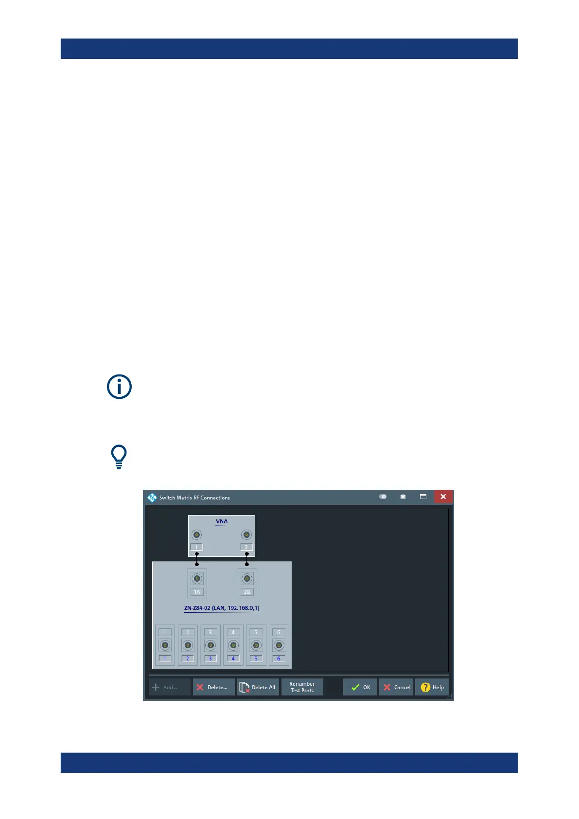 Every VNA port that is not connected to a matrix must be assigned to a test port