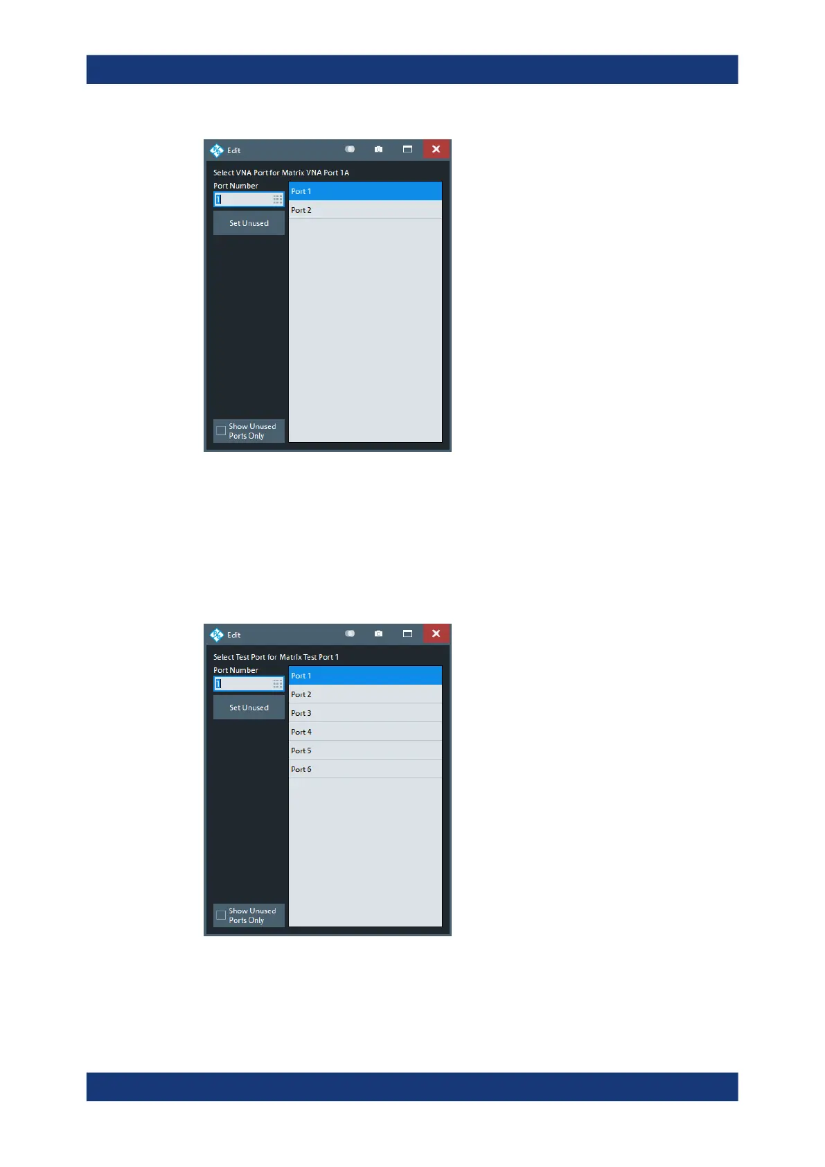 In the "Edit" dialog select the appropriate VNA port or tap "Set Unused" to delete the