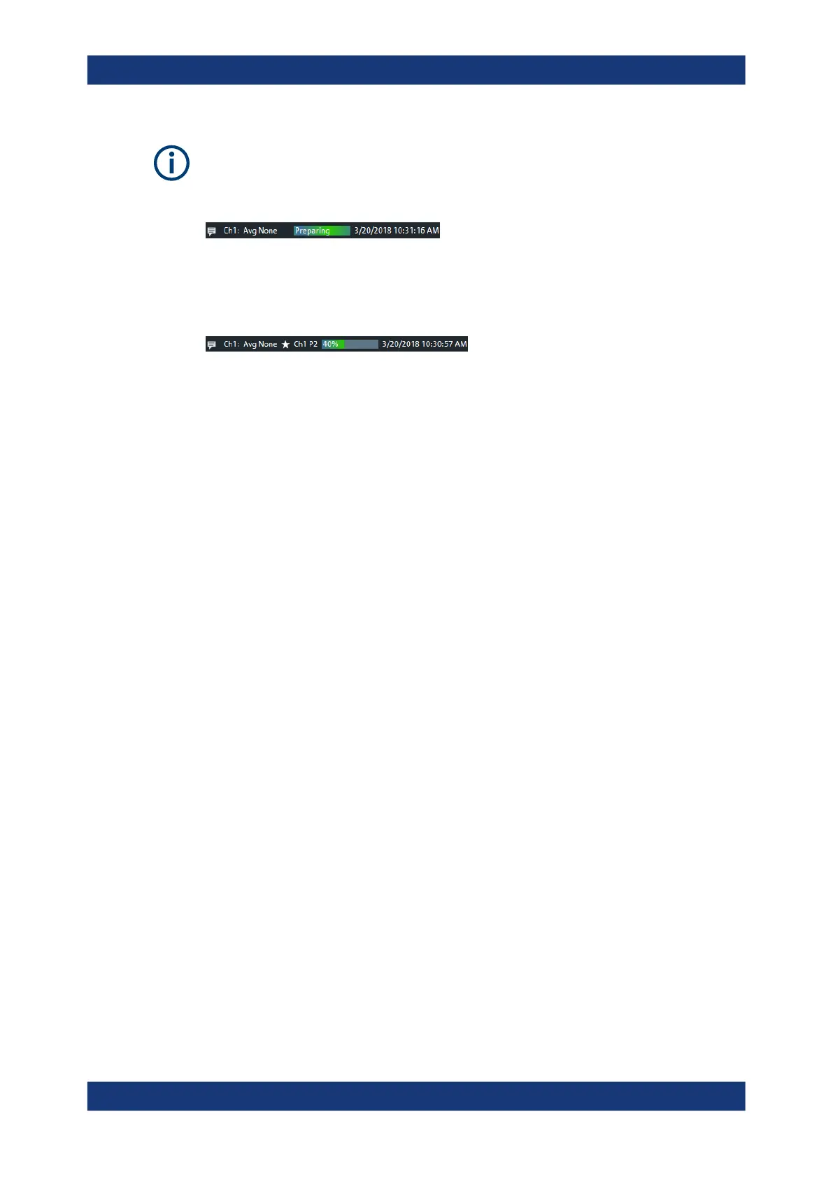 During the first sweep after a change of the channel settings, the analyzer displays an