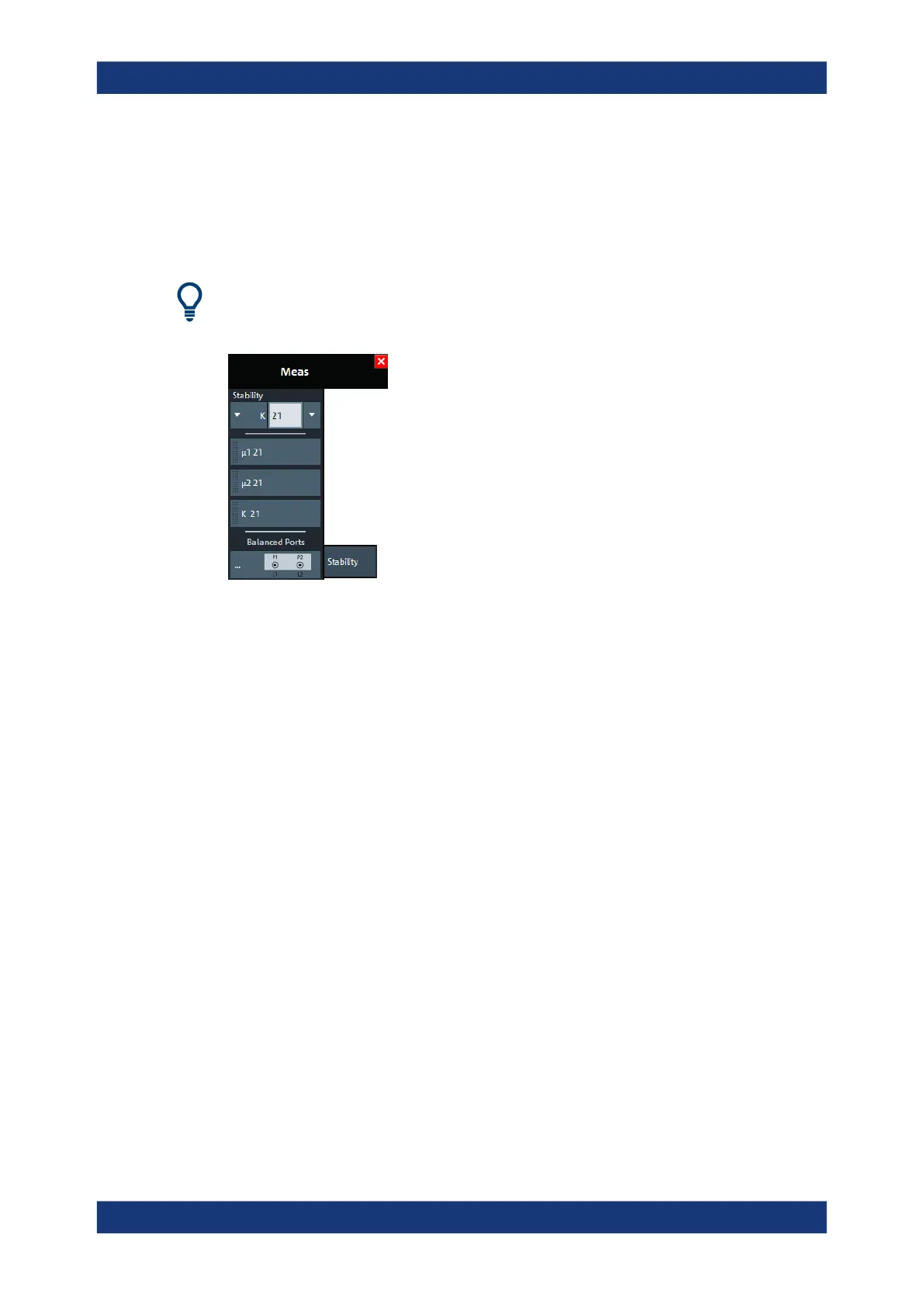 Selects one of the standard 2-port stability factors as a measured quantity for the
