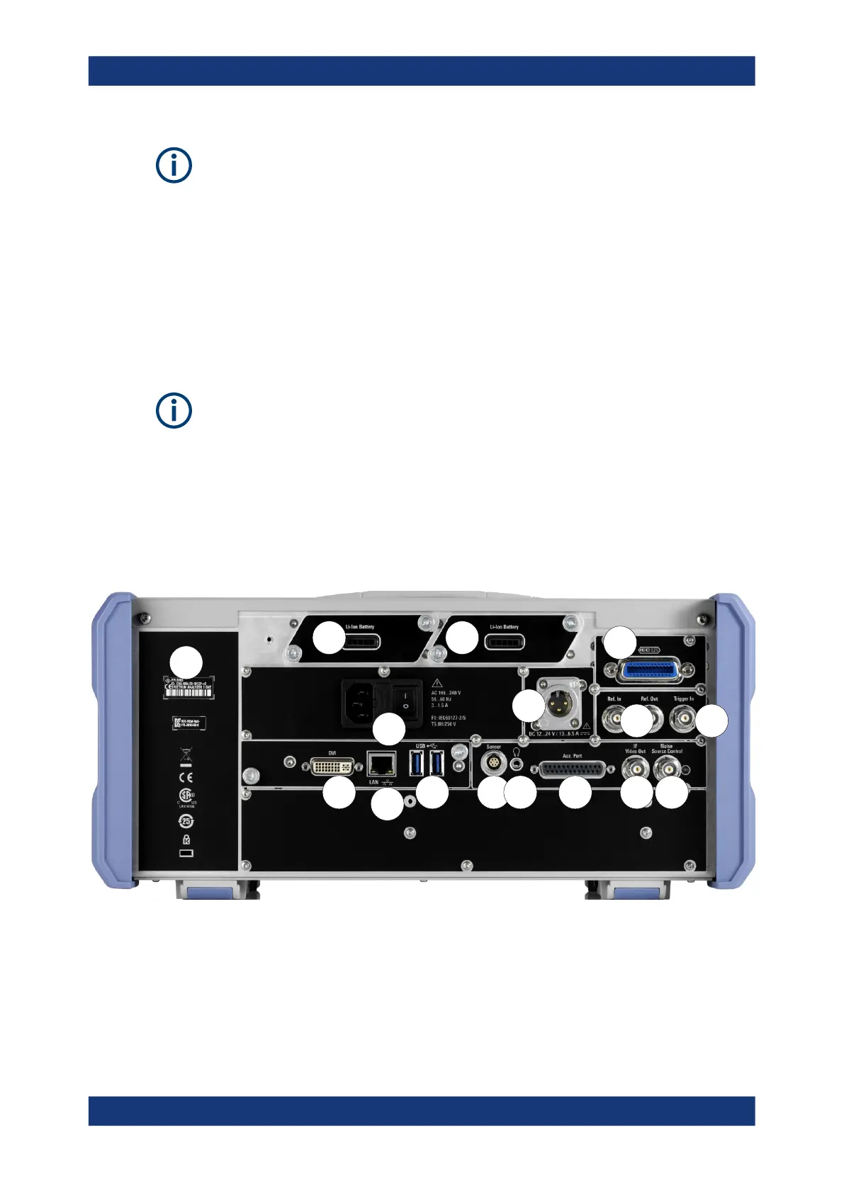 This figure shows the rear panel view of the R&S ZNL/ZNLE. The individual elements