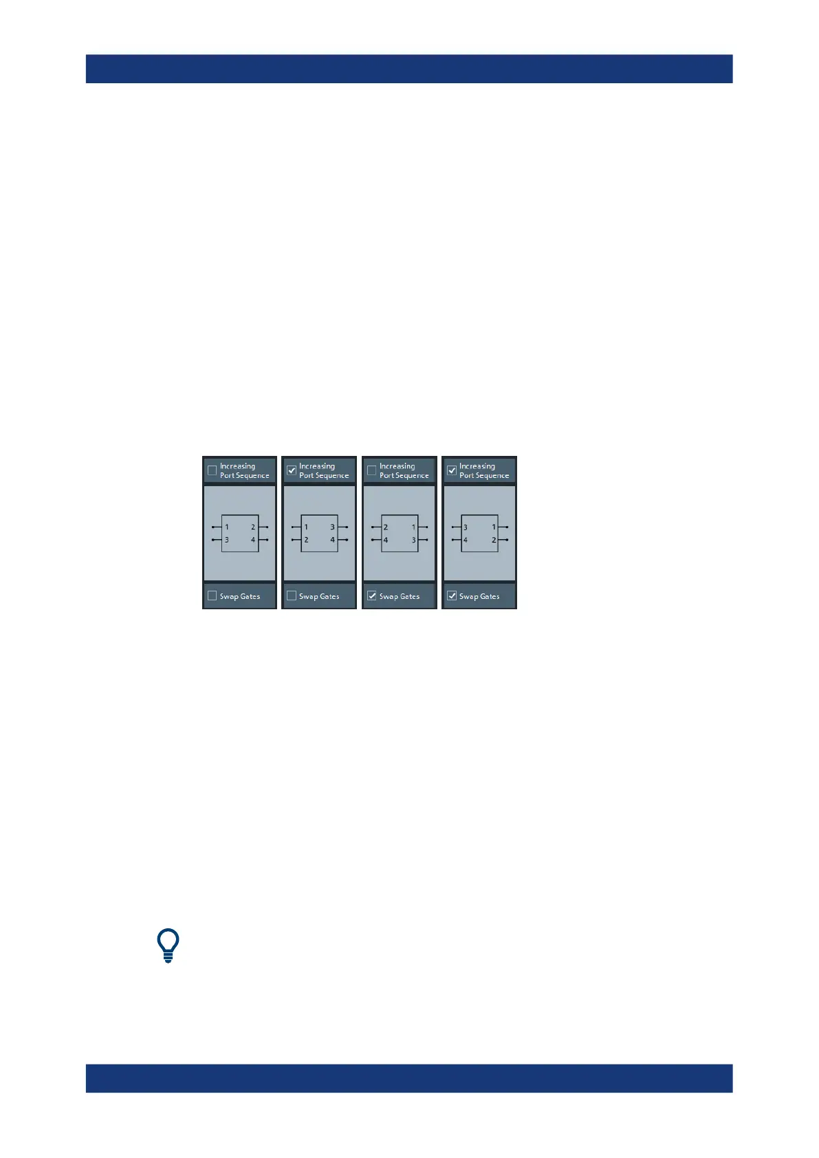 side), even ports right (DUT side). However, it is also possible to instruct the analyzer
