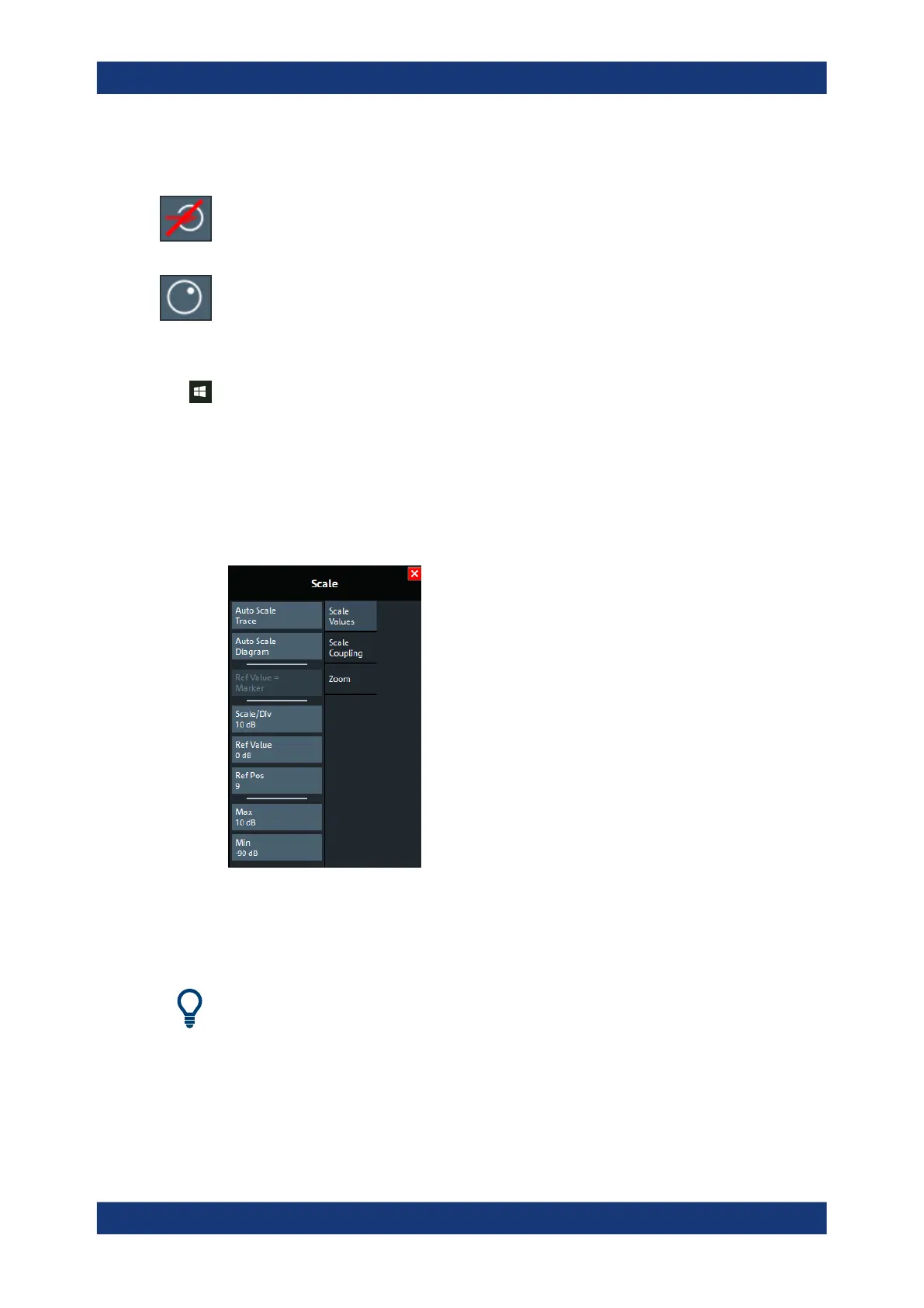 The softtools are displayed in the softkey bar of the instrument. The title area of the