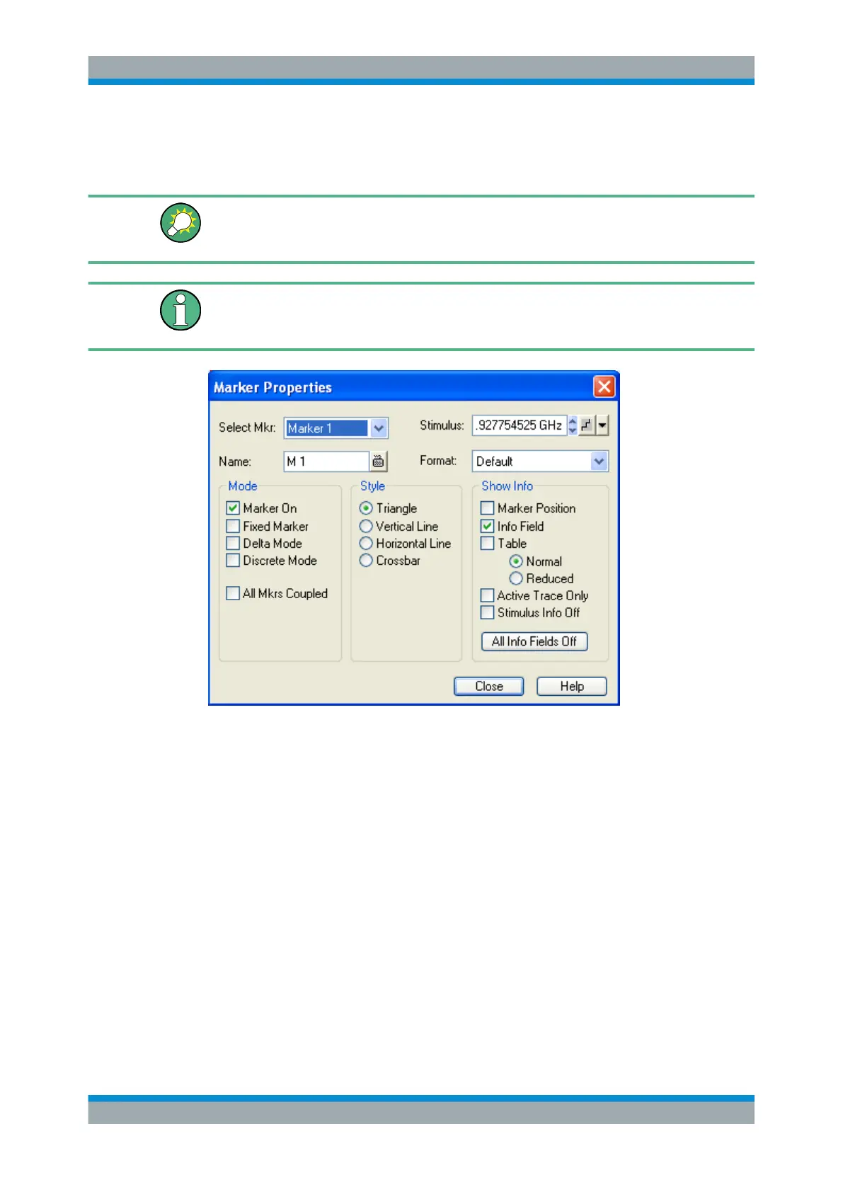 Properties...") call up a dialog. The dialogs of the analyzer have an analogous structure