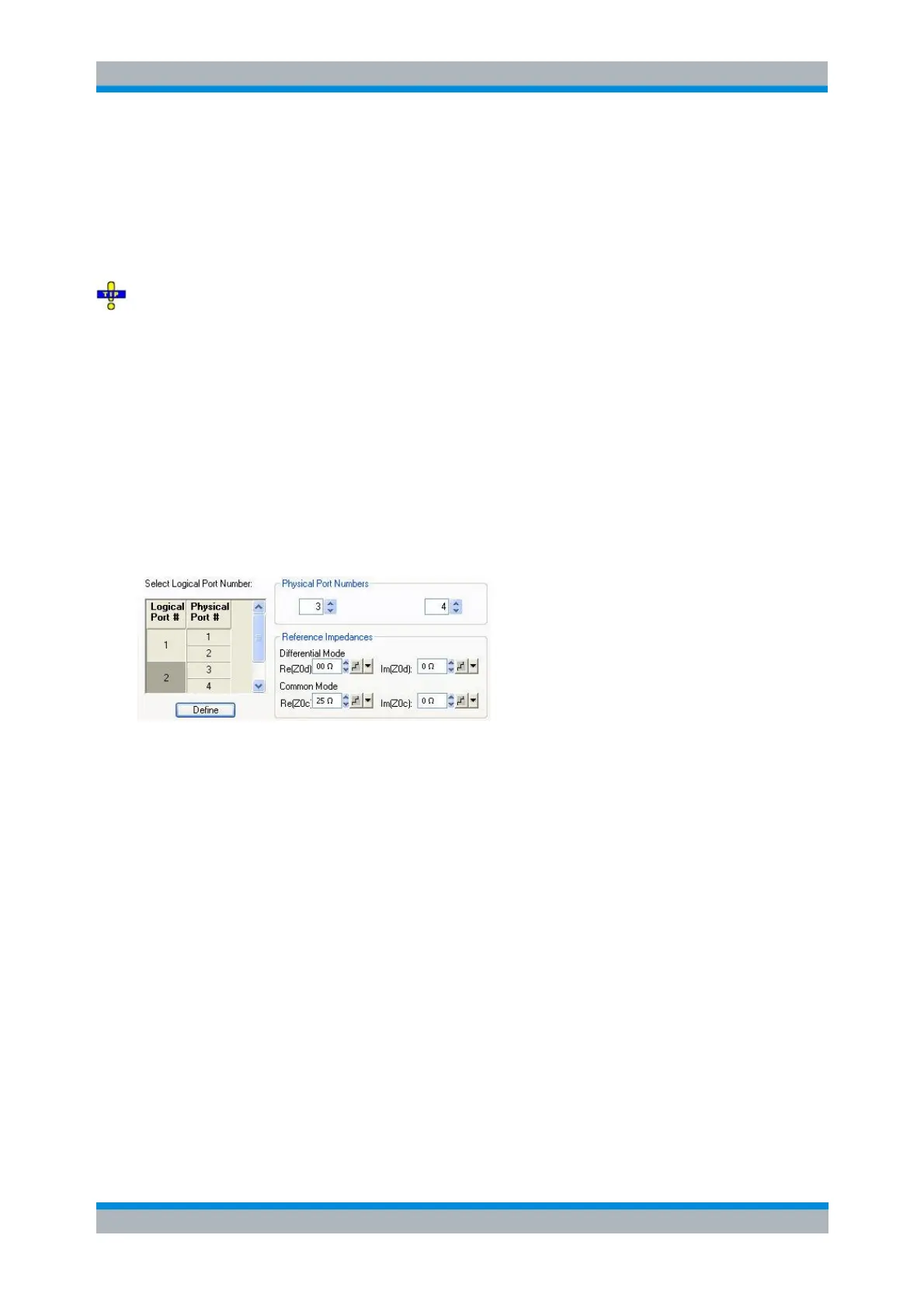 3. Assign the appropriate differential and common mode reference impedances to logical port no. 1